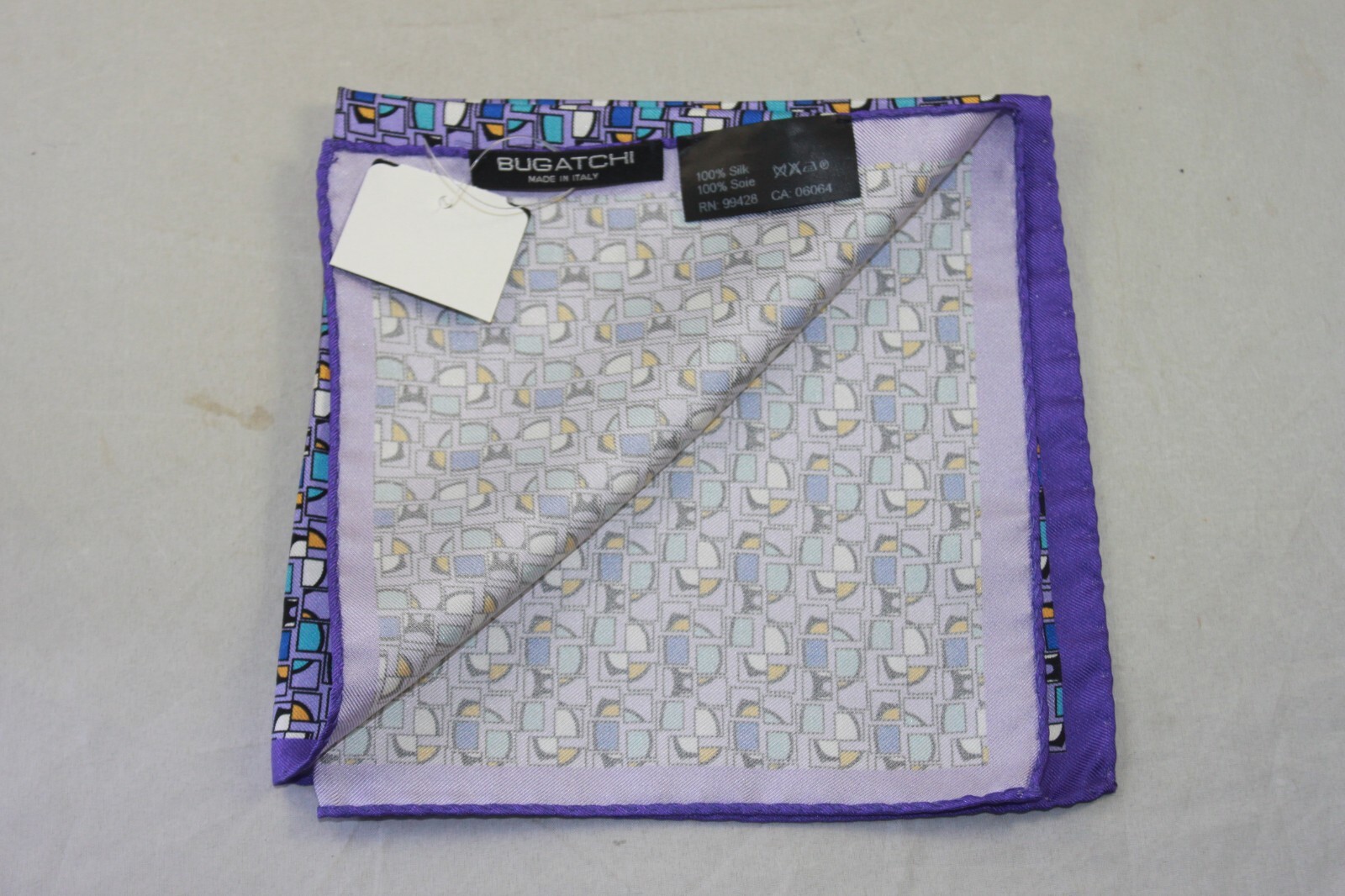 Bugatchi Men's Purple Geometric Print Pocket Square 13 inches Sq