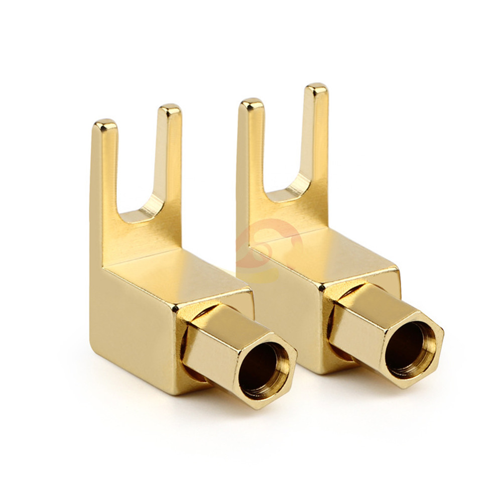 как выглядит 20pcs Gold Plated Spade to Banana Female Plug Audio Speaker Cable Connector Plug фото