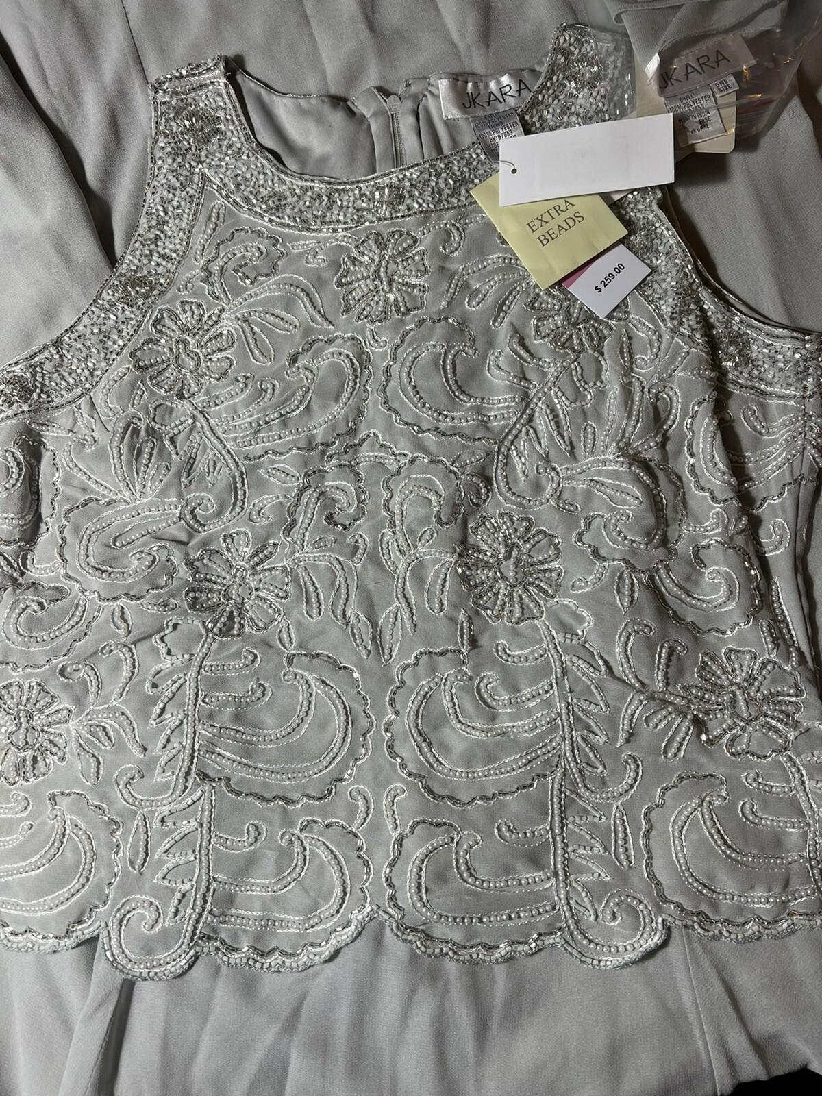 Size 10 J Kara Women's Sleeveless Scallop Long Beaded Dress In Silver 259.00