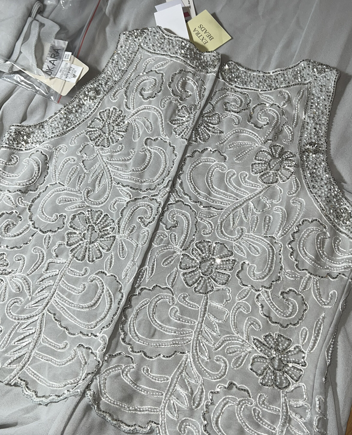как выглядит Size 10 J Kara Womens Sleeveless Scallop Long Beaded Dress In Silver 259.00 фото