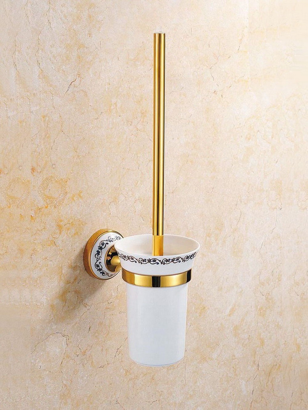 как выглядит Gold Color Brass Toilet Brush Set Holder Brush Ceramic Cup Wall Mount aba247 фото