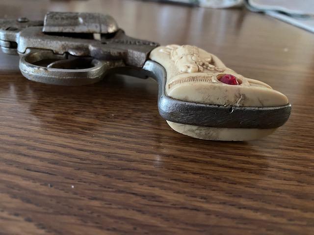 как выглядит VINTAGE STEVENS BANG-O CAST IRON CAP GUN 1938-40 фото