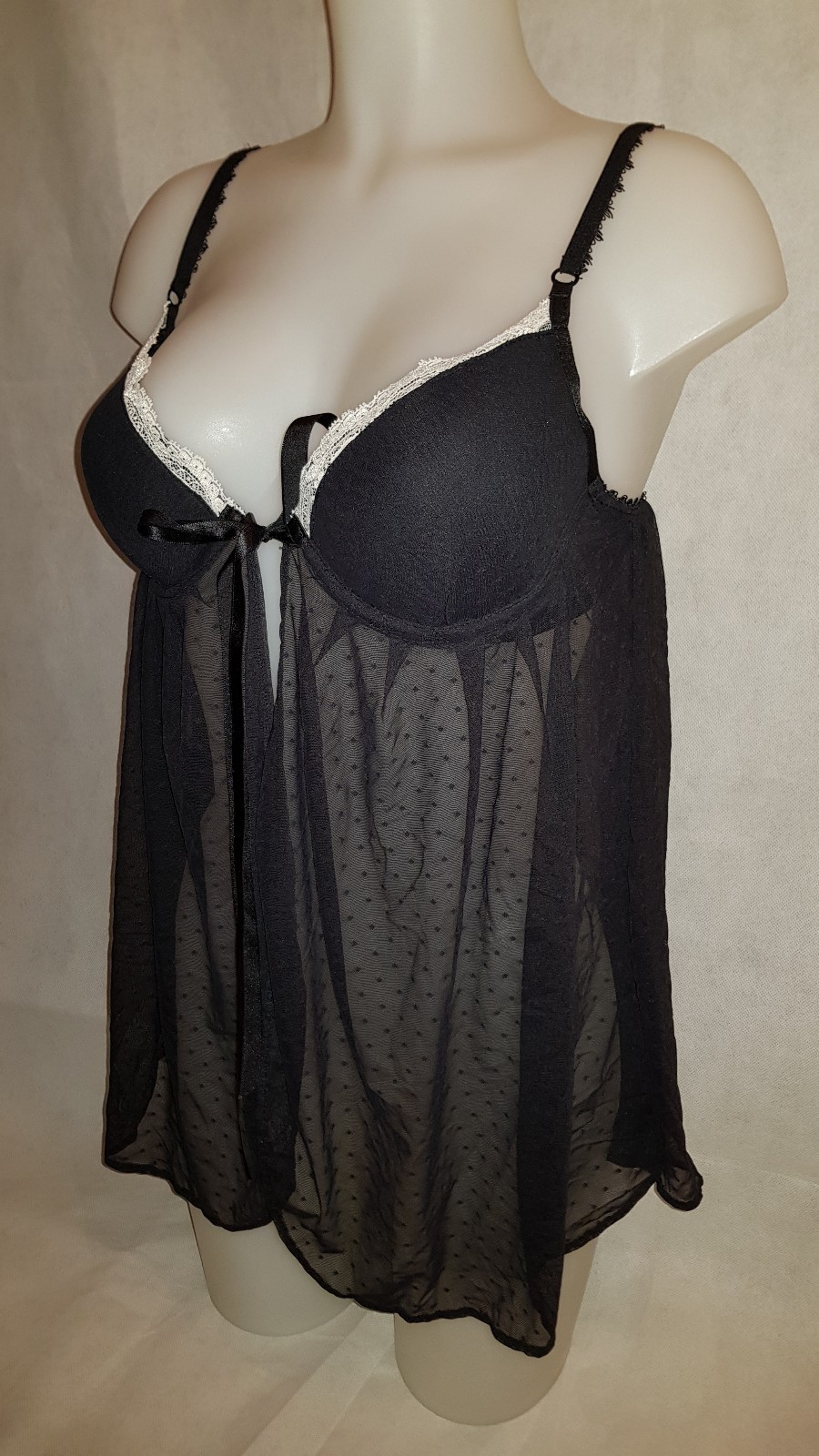 как выглядит Gorgous black MAX CLEAVAGE gel filled push-up underwired babydoll dress size 30A фото