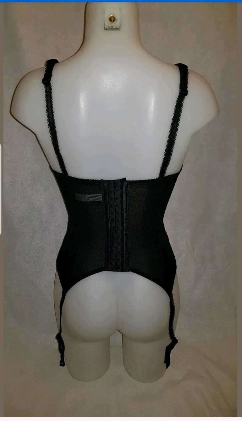 как выглядит BNWT Black Pink Bow POUR MOI underwired Boned Corset Basque Suspenders Size 34DD фото