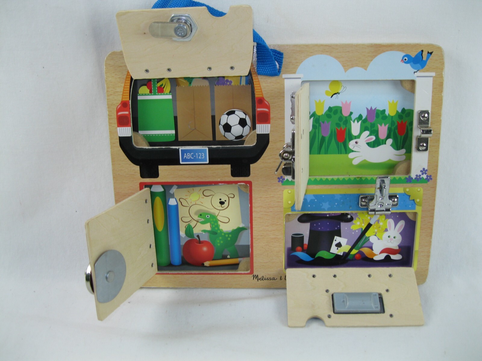 как выглядит Melissa and Doug Lock And Latch Board Preschool Learning Tool Interactive Toy фото