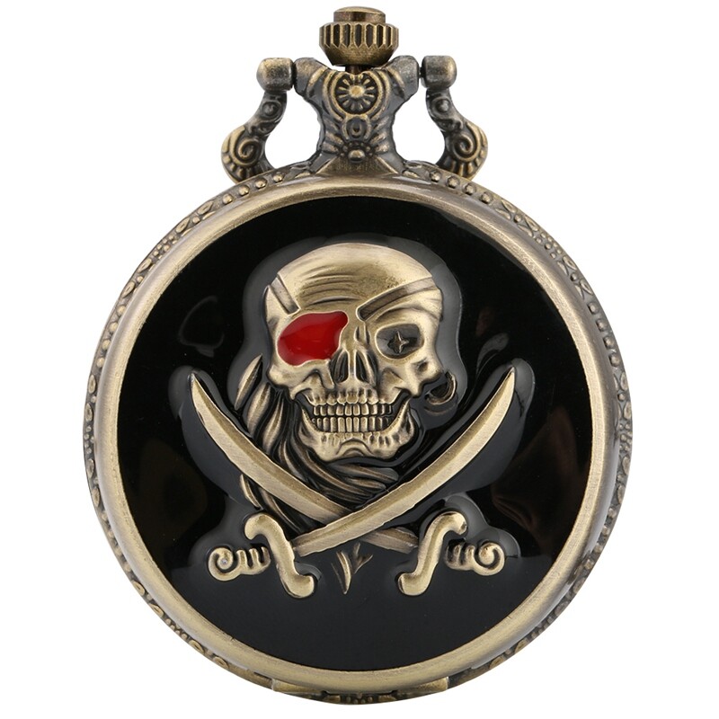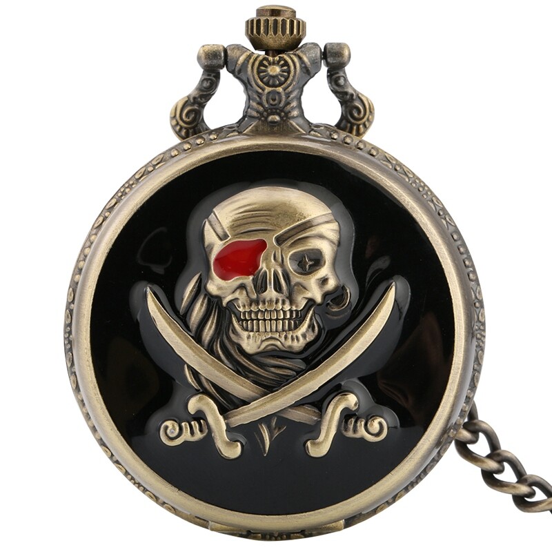 Retro Style Skull Pirate Quartz Pocket Watch with Fob Chain Best Gift Men Women