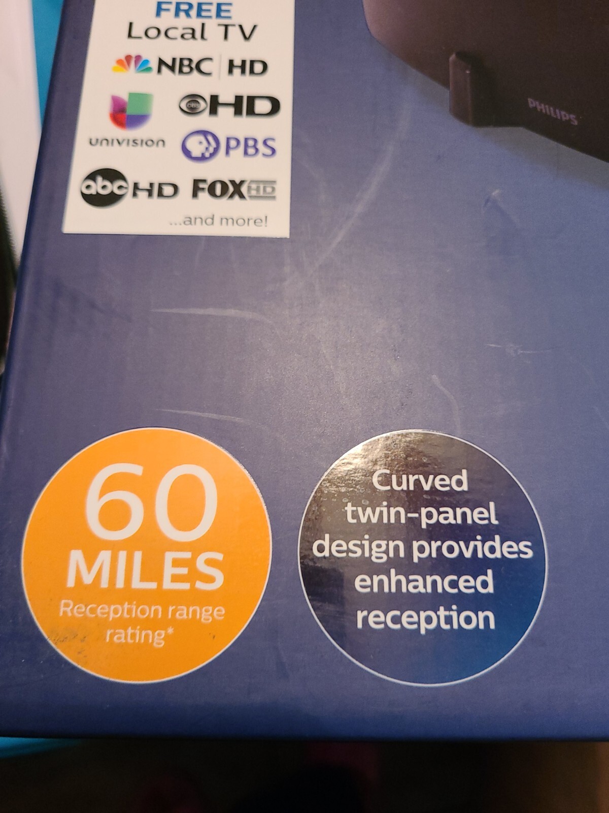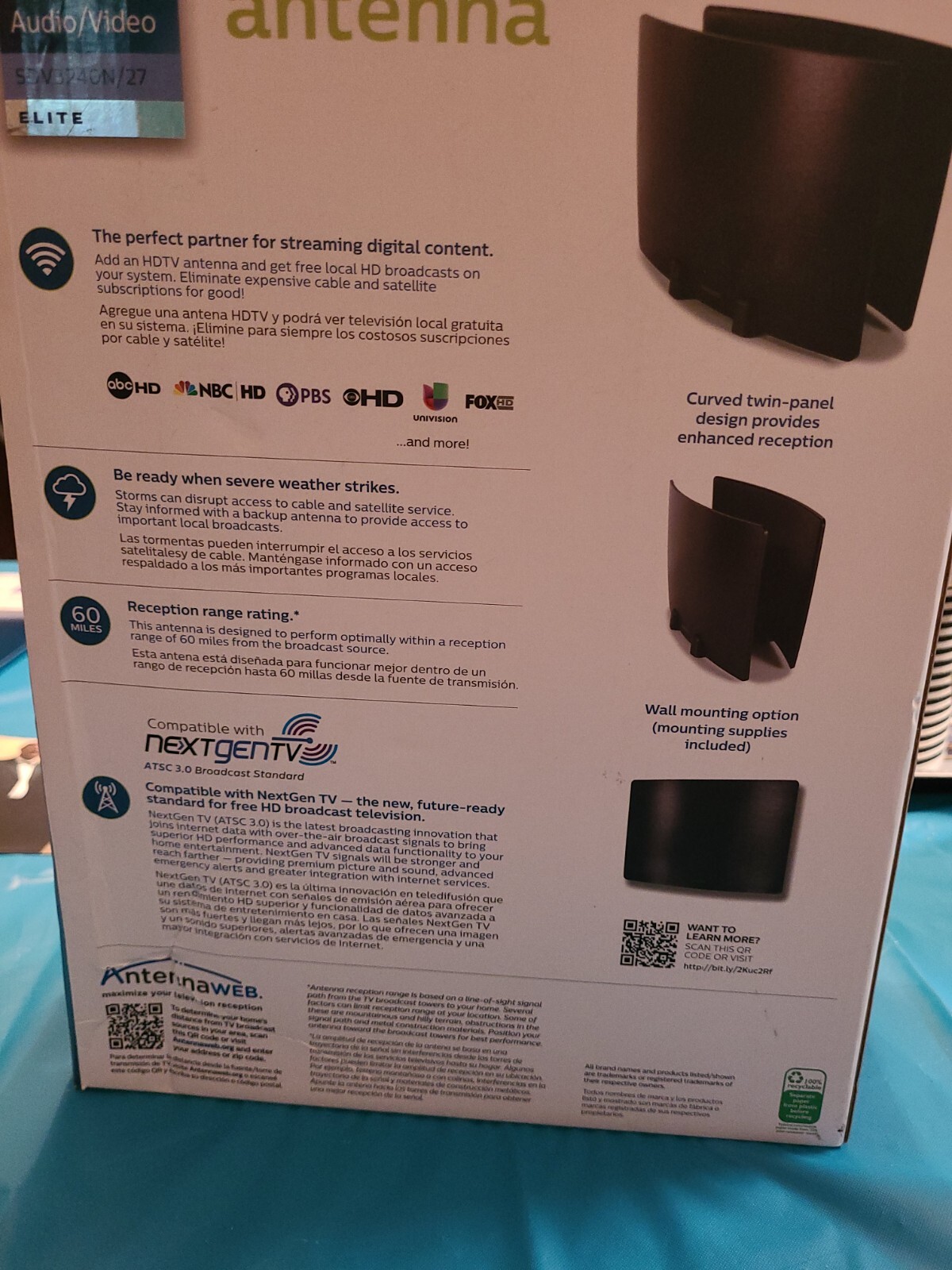 Philips Elite Optima HD Indoor Amplified Curved TV Antenna Black New Open Box