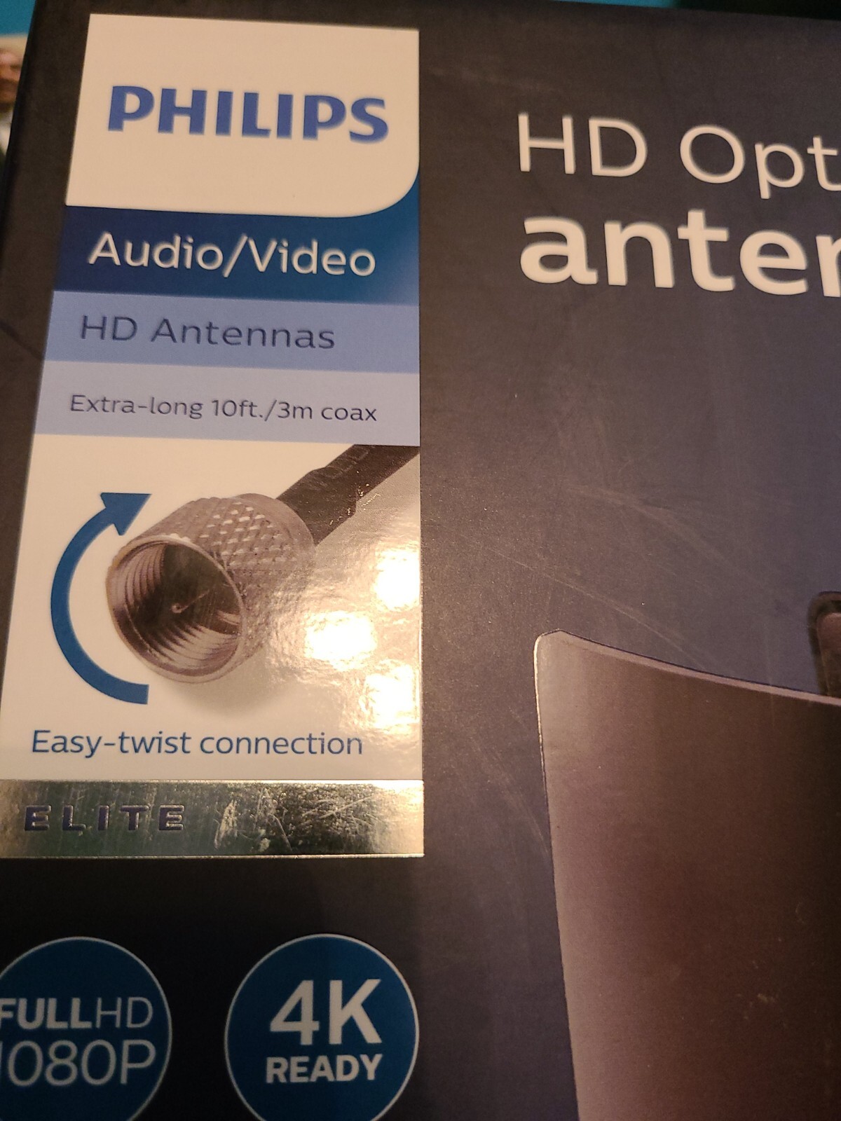 как выглядит Philips Elite Optima HD Indoor Amplified Curved TV Antenna Black New Open Box фото