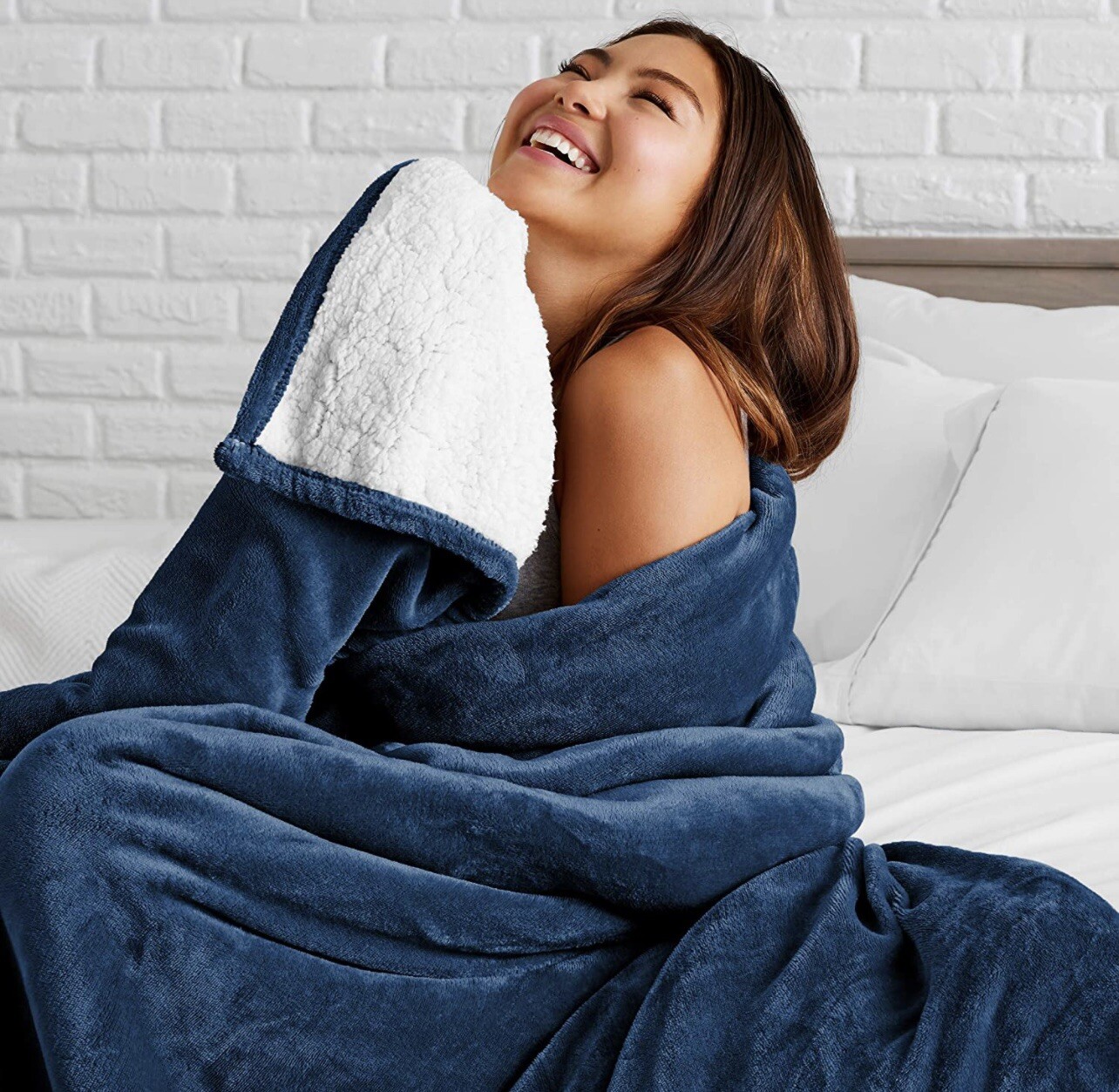 Bare Home Twin XL Blue Sherpa Fleece Blanket Extra Soft Comfort NWT