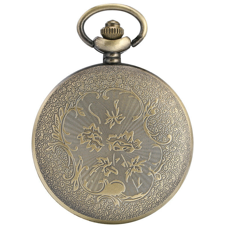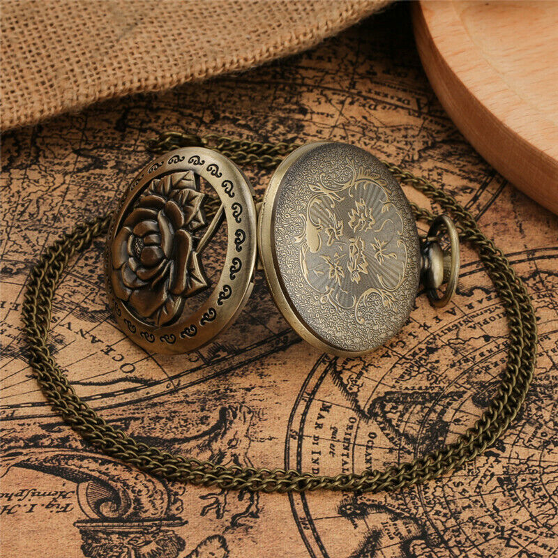 Bronze Romantic Rose Design Quartz Pocket Watch Necklace Chain Gifts for Women
