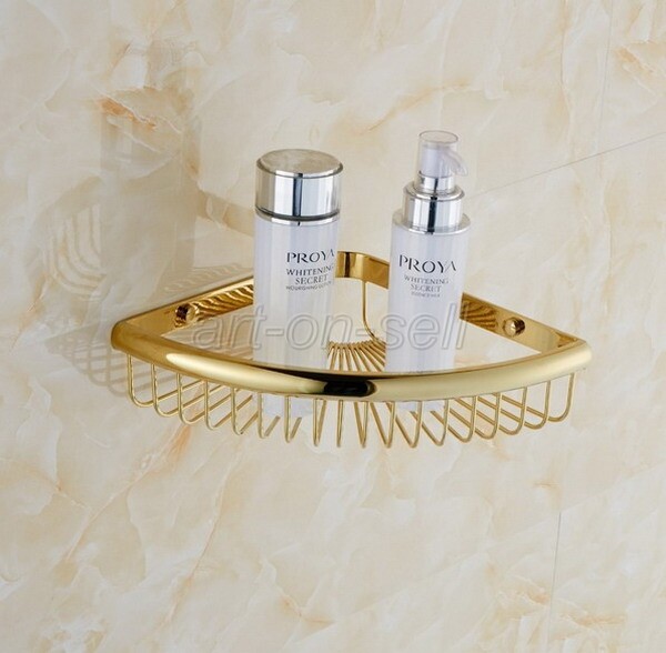 Gold Color Brass Bathroom Shower Caddy Corner Wire Basket Storage Shelves aba099