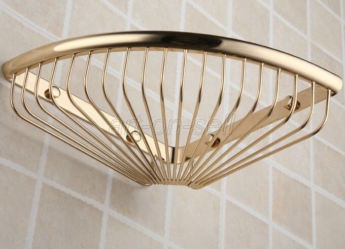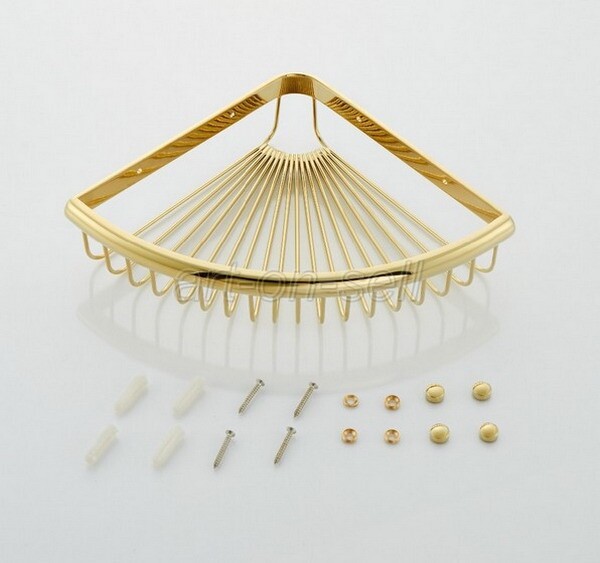 как выглядит Gold Color Brass Bathroom Shower Caddy Corner Wire Basket Storage Shelves aba099 фото