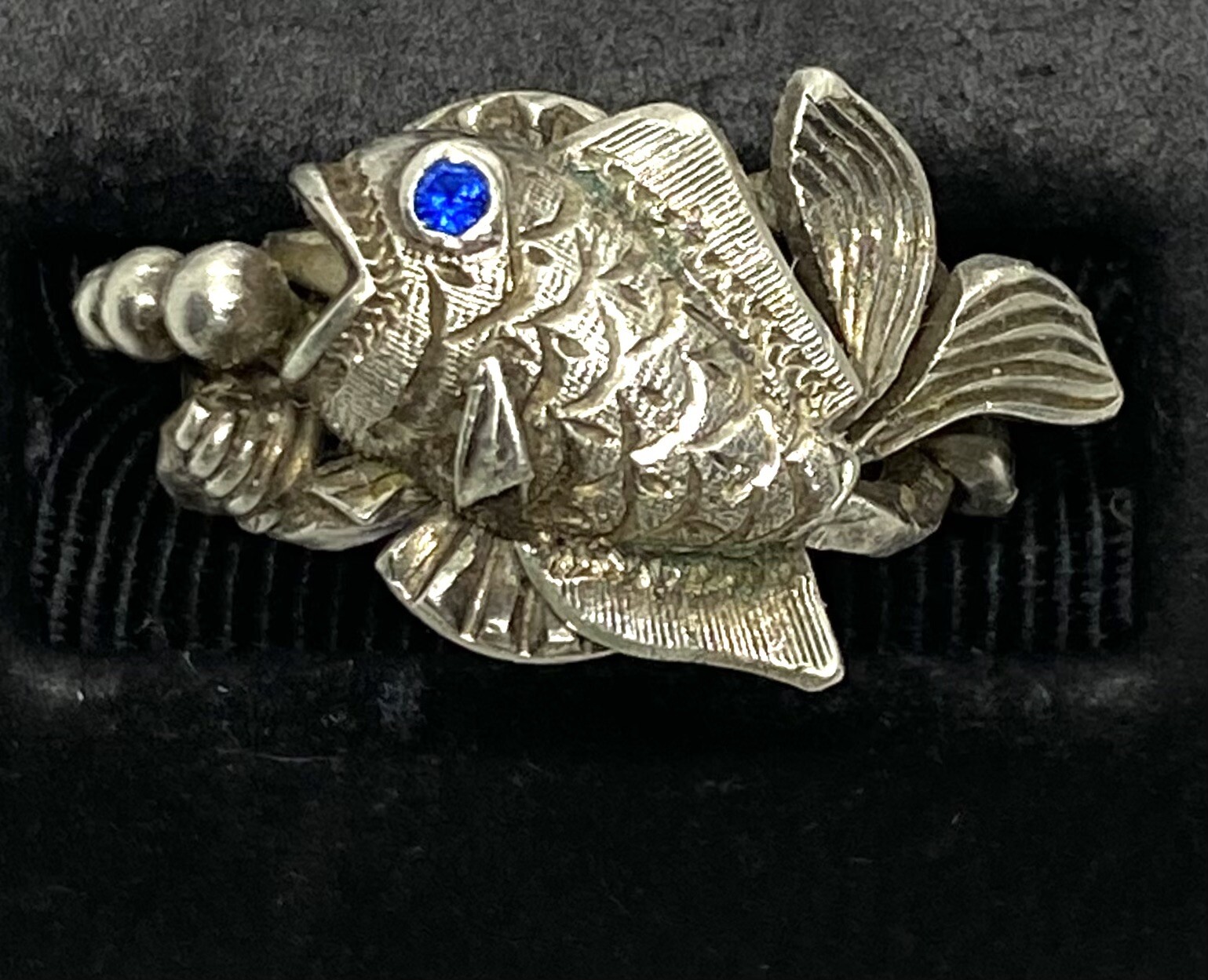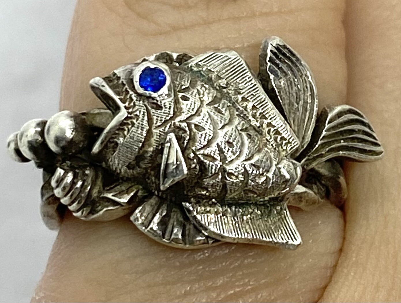 как выглядит Vintage Sterling Silver Blue Stone Fish Band Ring Size5 6.31g фото