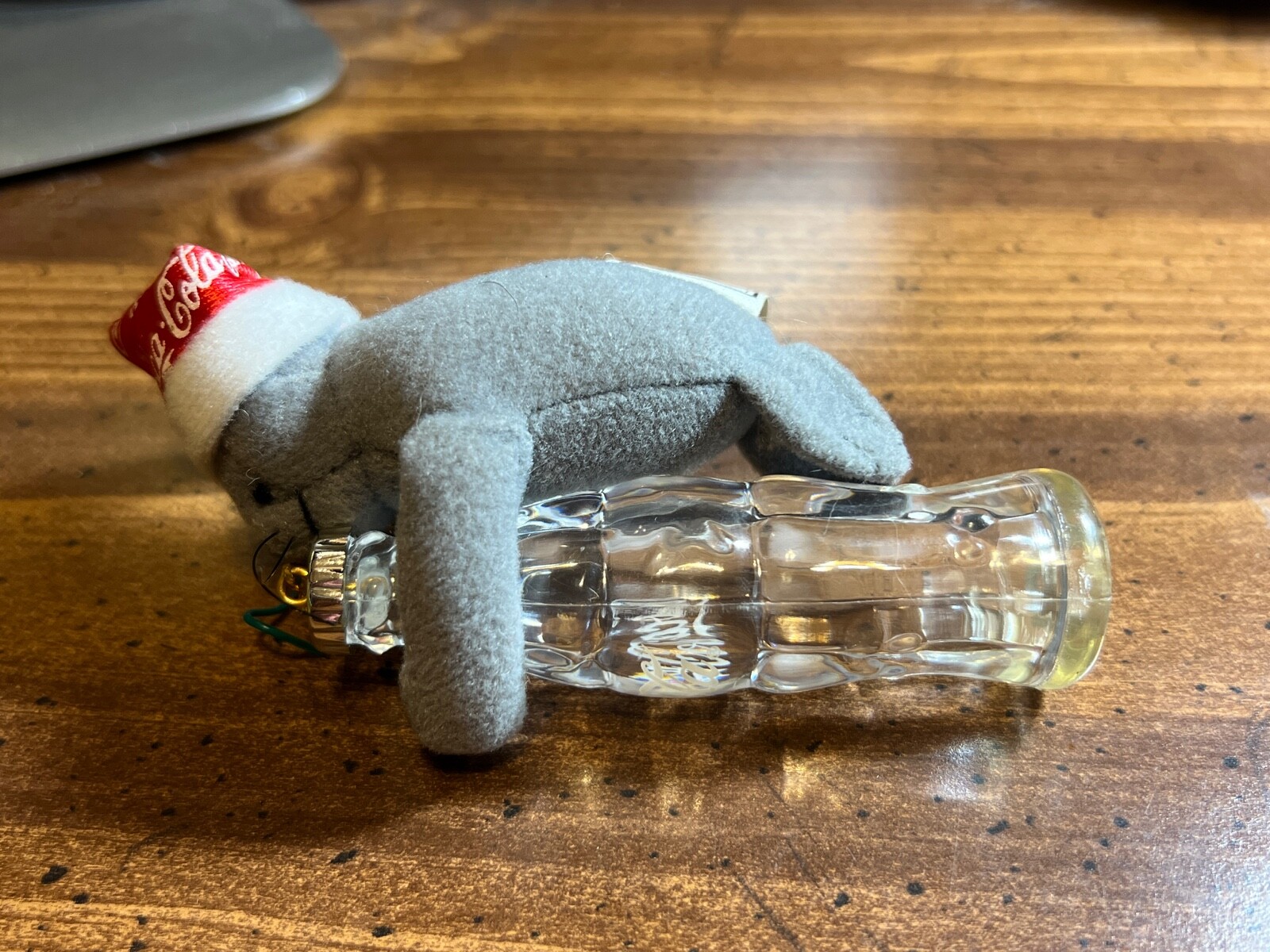 как выглядит Vintage1998 Coca-Cola Christmas Ornament Plush Seal Clutching Coke Bottle w/ Tag фото