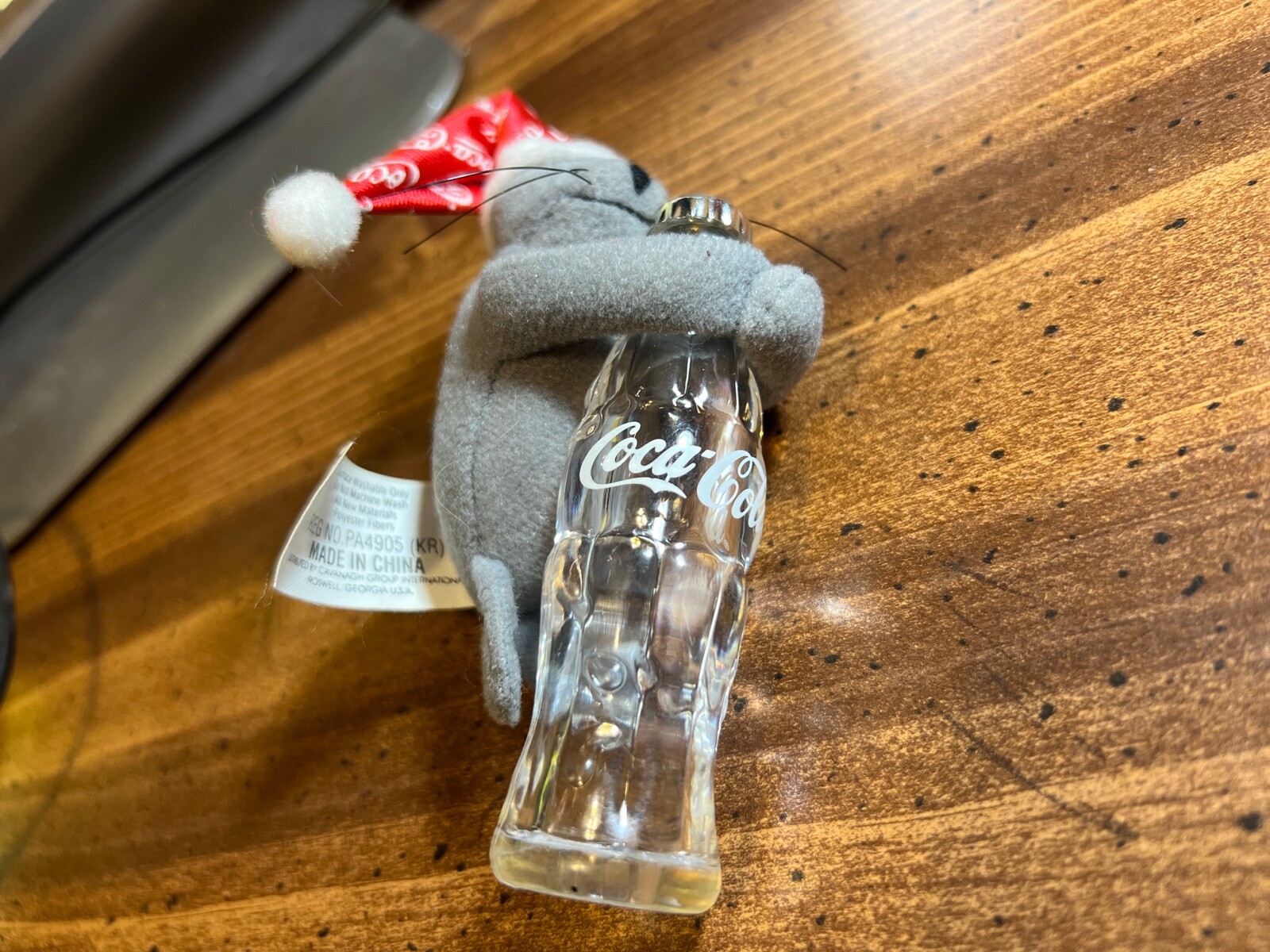 • Vintage1998 Coca-Cola Christmas Ornament Plush Seal Clutching Coke Bottle w/ Tag