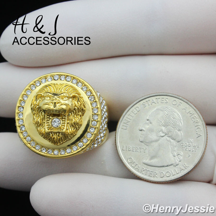 как выглядит MENs Stainless Steel Icy Bling CZ Gold Plated Lion Head Round Ring AGR147 фото