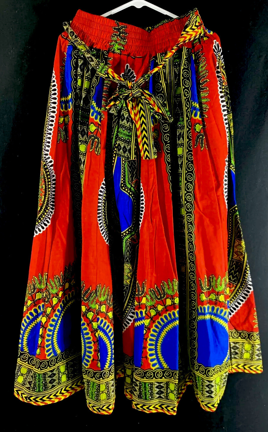 Maxi Skirt Size M-L Ankara Dashiki Print African Tie Belt Vibrant Color NEW