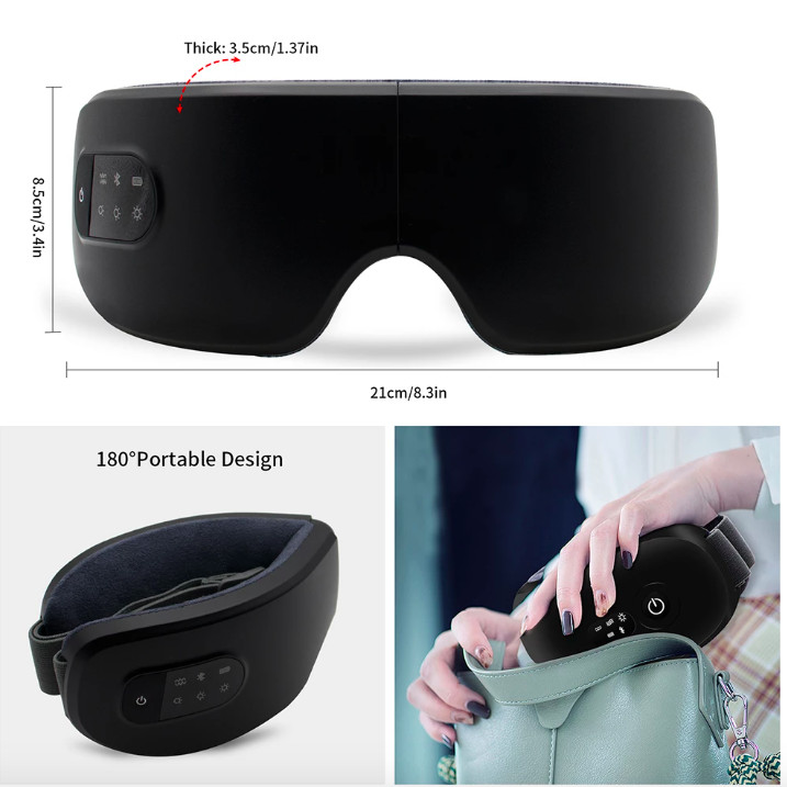 Wireless Eye Massager with Heat, Built-in Bluetooth Music USB Recharge Vibration