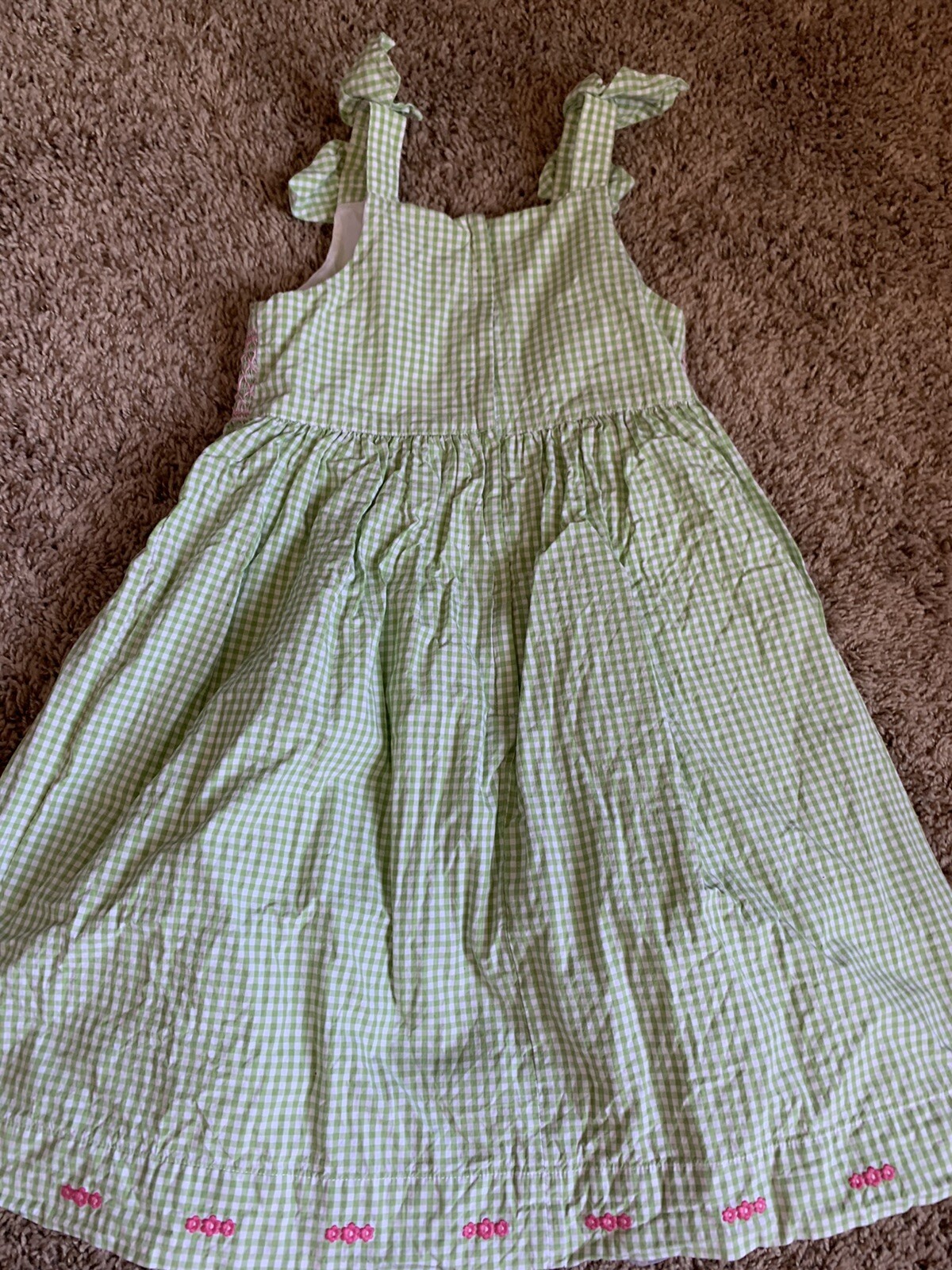 как выглядит Gymboree Easter Girls Size 7 Dress Flowers Green Gingham Fairy Garden Smocked фото