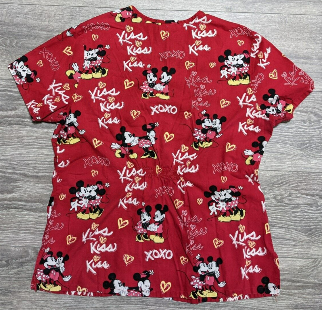 Mickey Mouse Scrubs Adult Medium Red Minnie Valentine's Love Top Preowned Womens