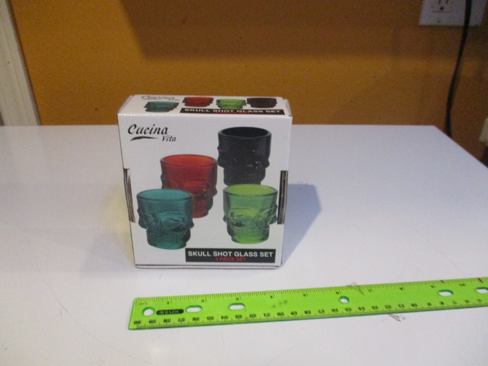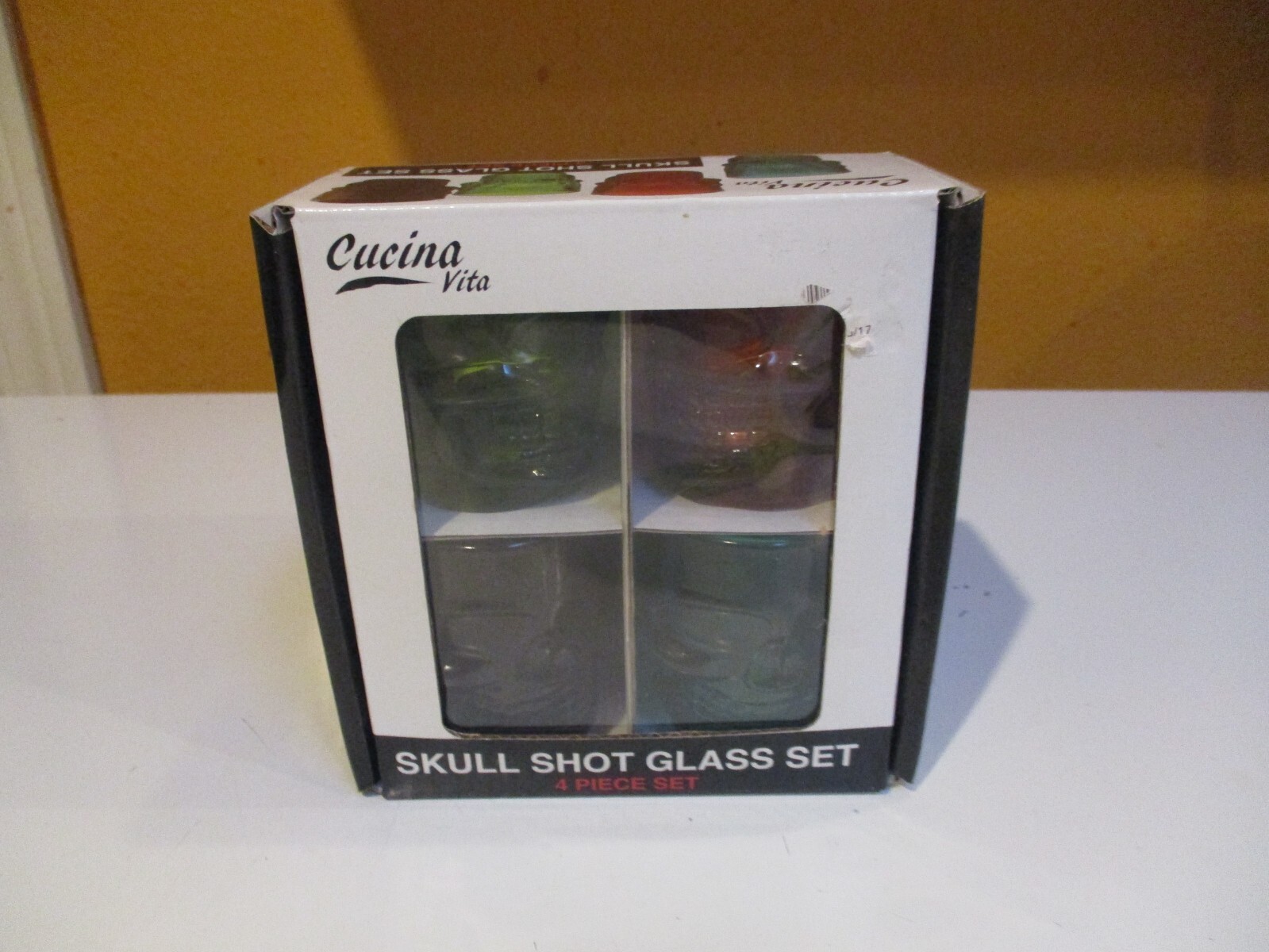 Cucina Skull Shot Glass Set 4 Bright Colors in Box 4-Count