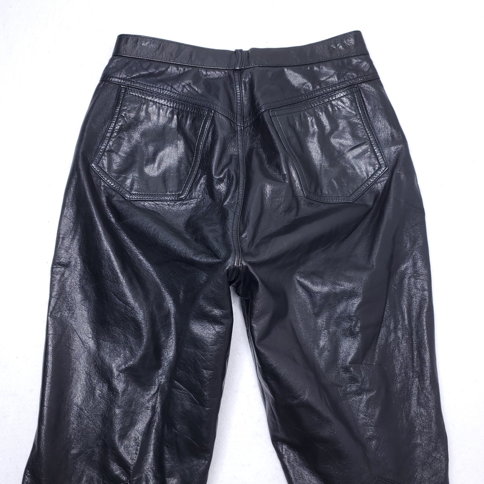 как выглядит Vintage Pour Le Sport Womens Black Leather Biker Pants Size 9/10 Slim Fit 30L фото