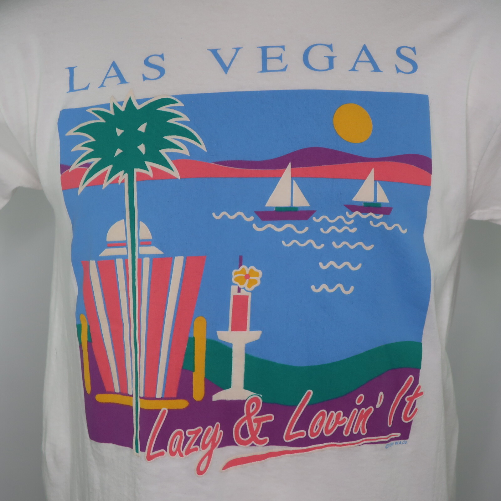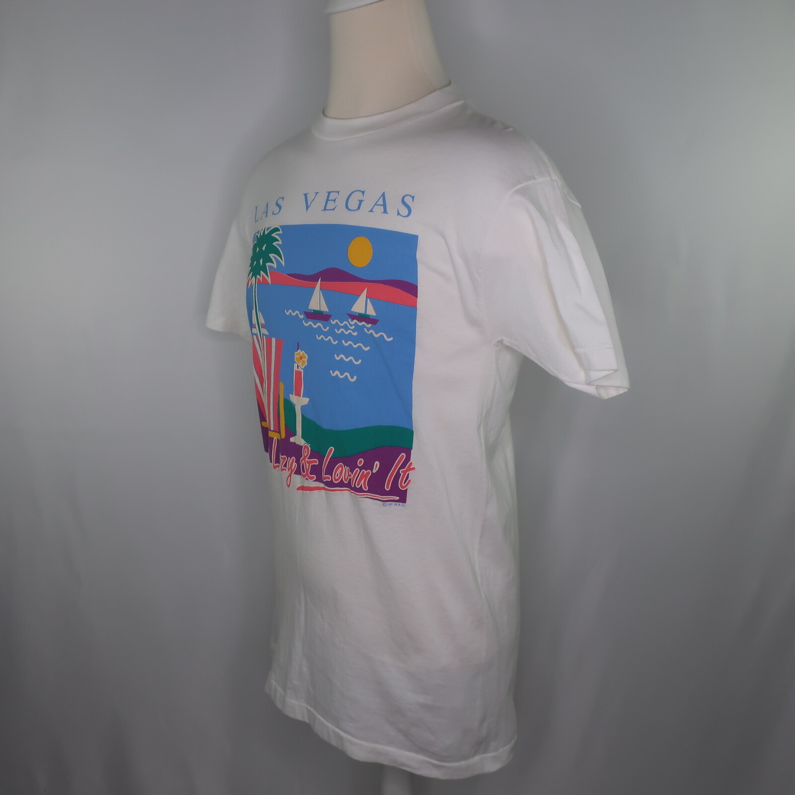 как выглядит VTG 90s 1991 Las Vegas Lazy Loving It Vacation Souvenir T Shirt Mens L USA Made фото