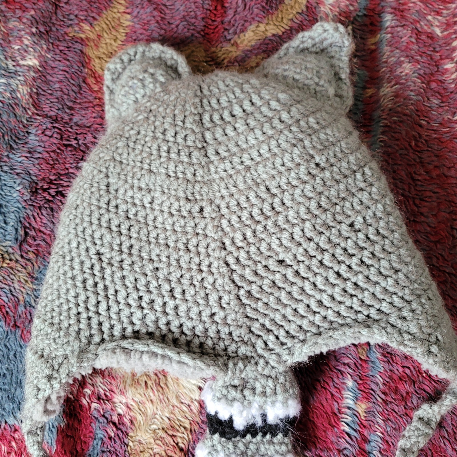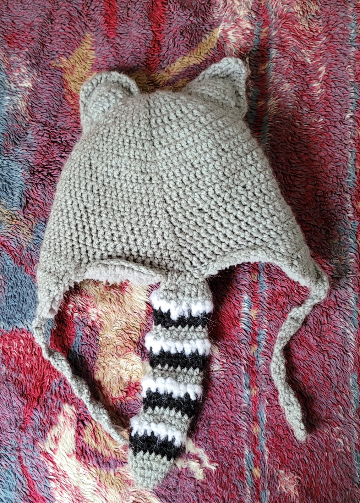 Handmade Kids Raccoon Winter Hat Fleece Lined
