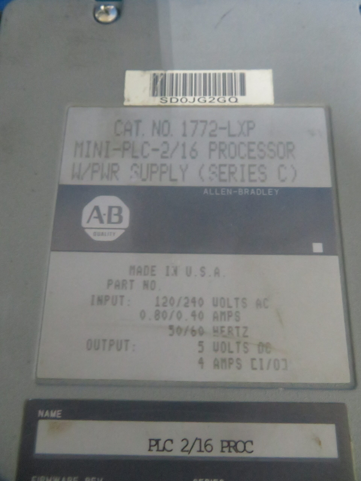 как выглядит Allen Bradley 1772-LXP Series C Rev G Mini-PLC 2/16 Processor w/ Power Supply... фото