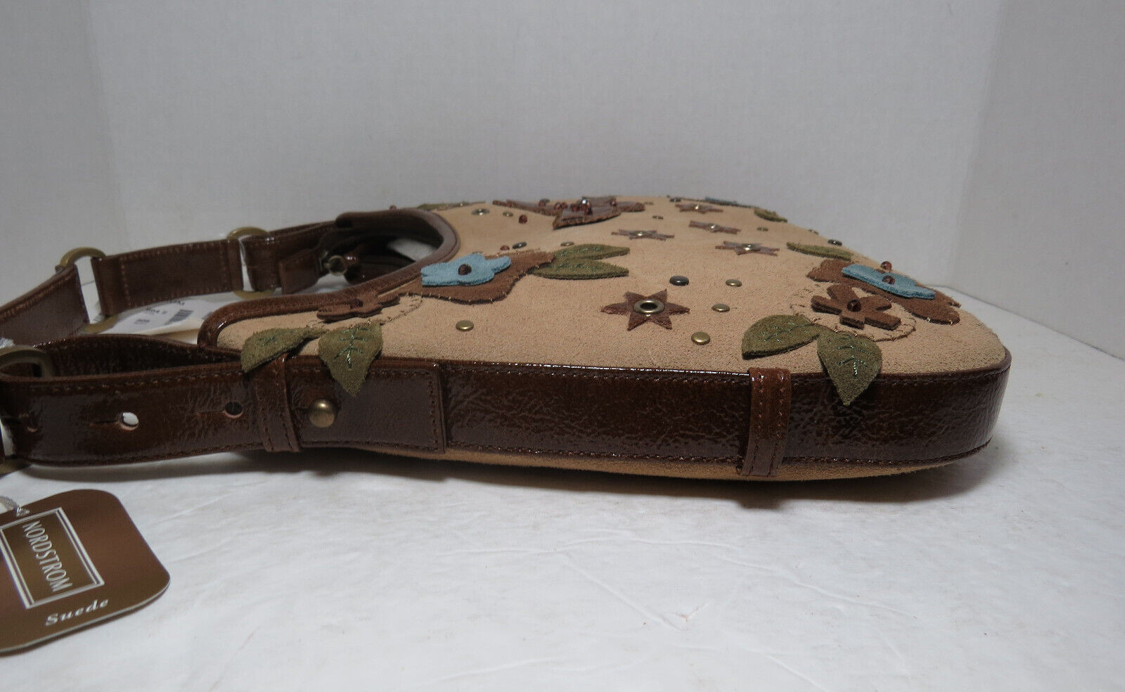 Nordstrom Oatmeal Color Suede Handbag Purse Butterflies, Flowers, Stars NWT