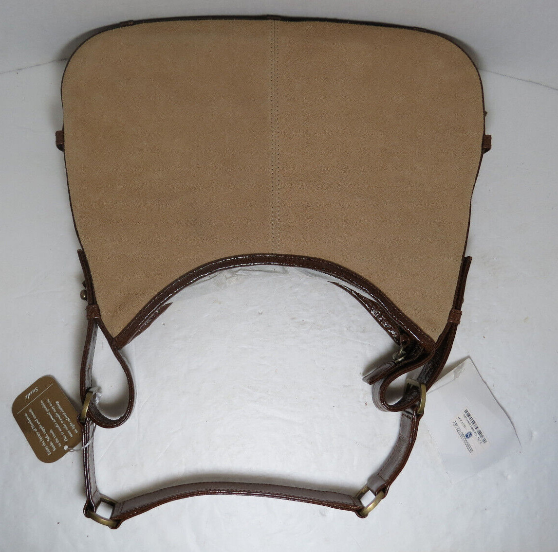 как выглядит Nordstrom Oatmeal Color Suede Handbag Purse Butterflies, Flowers, Stars NWT фото