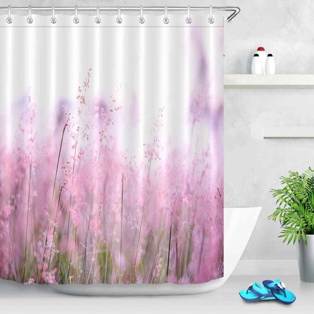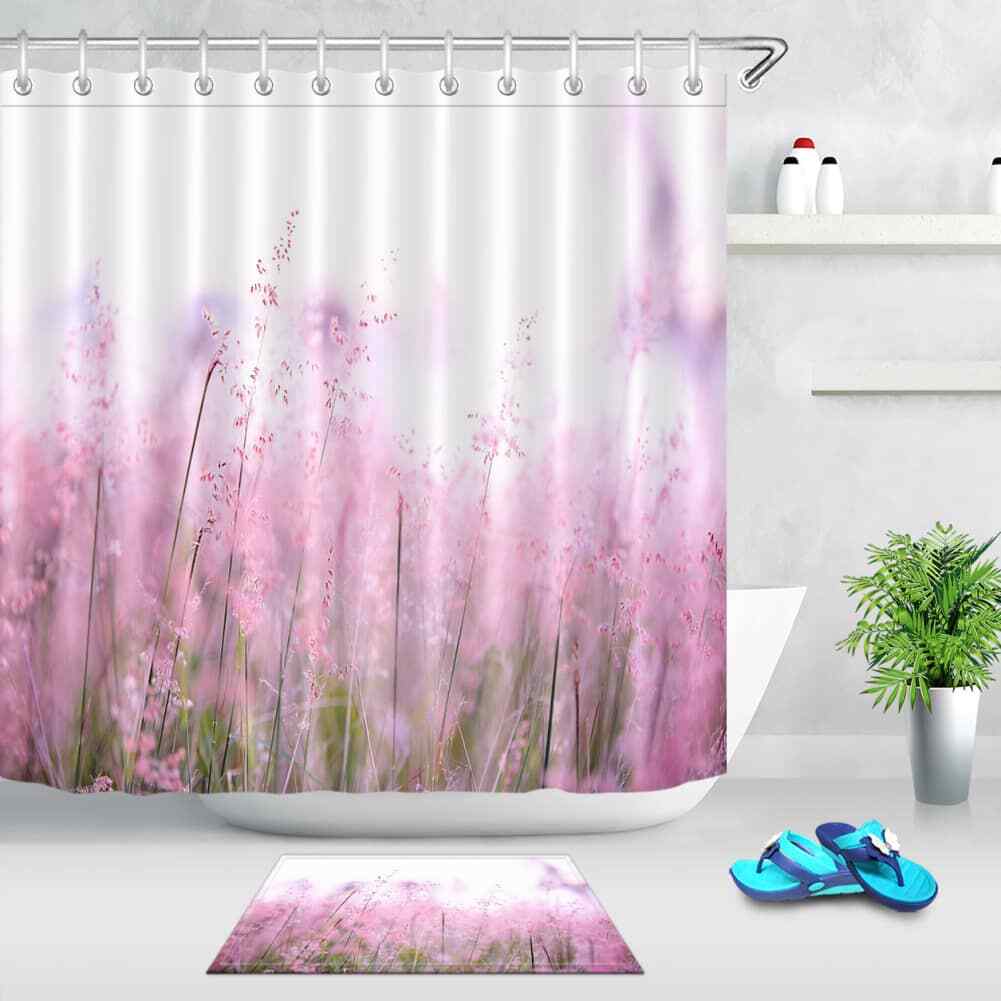 Pink Field Waterproof Bathroom Polyester Shower Curtain Liner Water Resistant