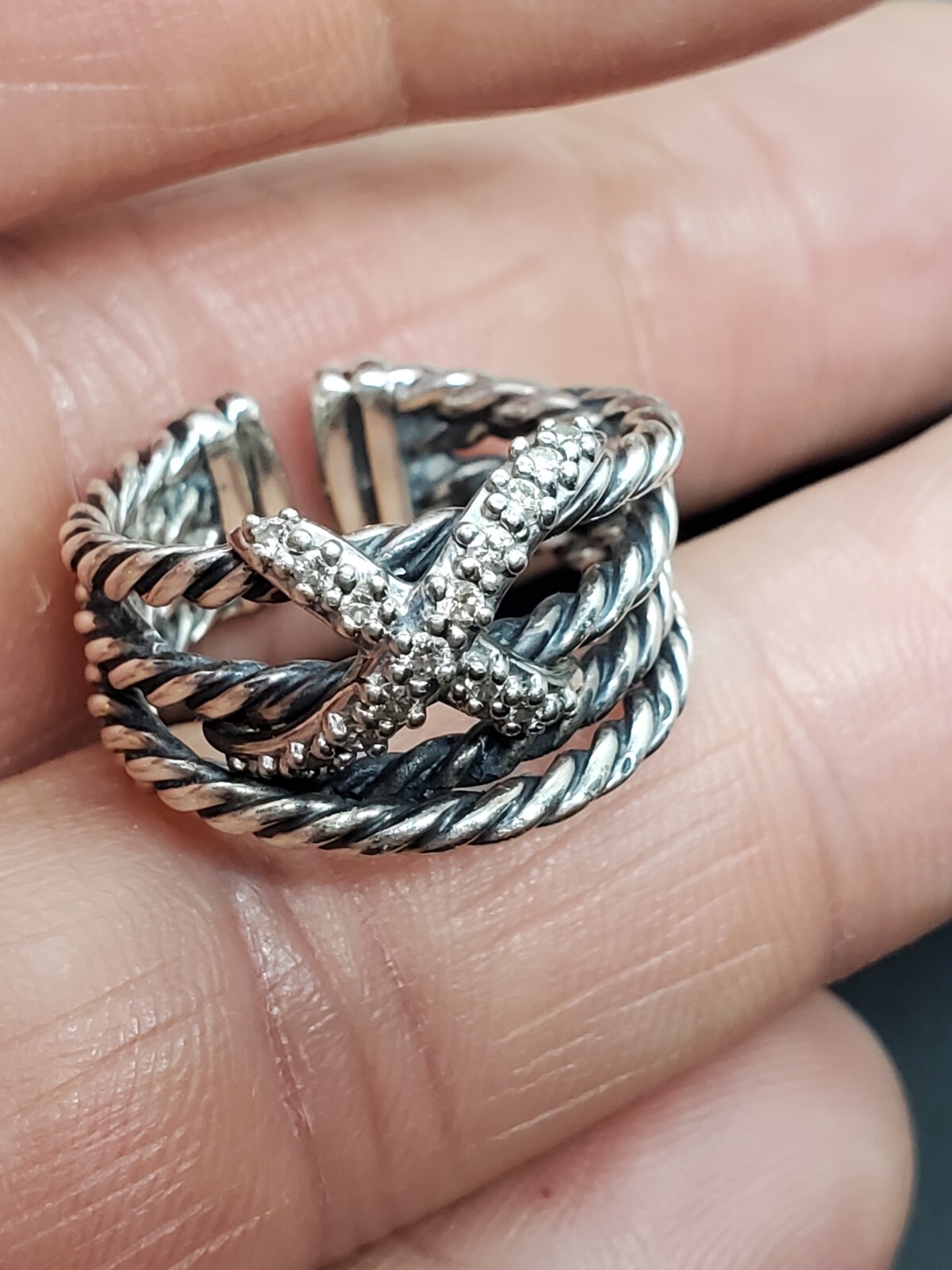 как выглядит David Yurman 925 Sterling Silver Diamond Ring Size 6.5 фото