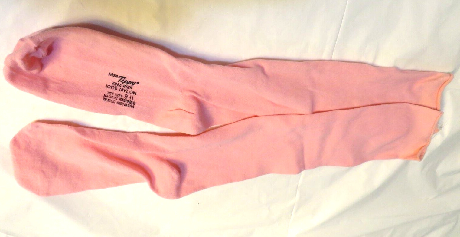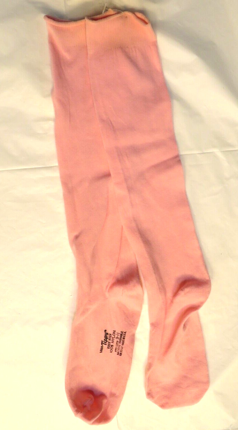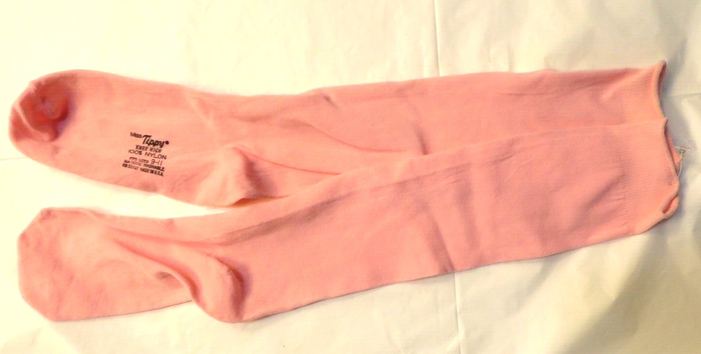 Nos Vintage 1970s USA Miss Tippy Baby Pink Knee Socks New Nylon Deadstock School
