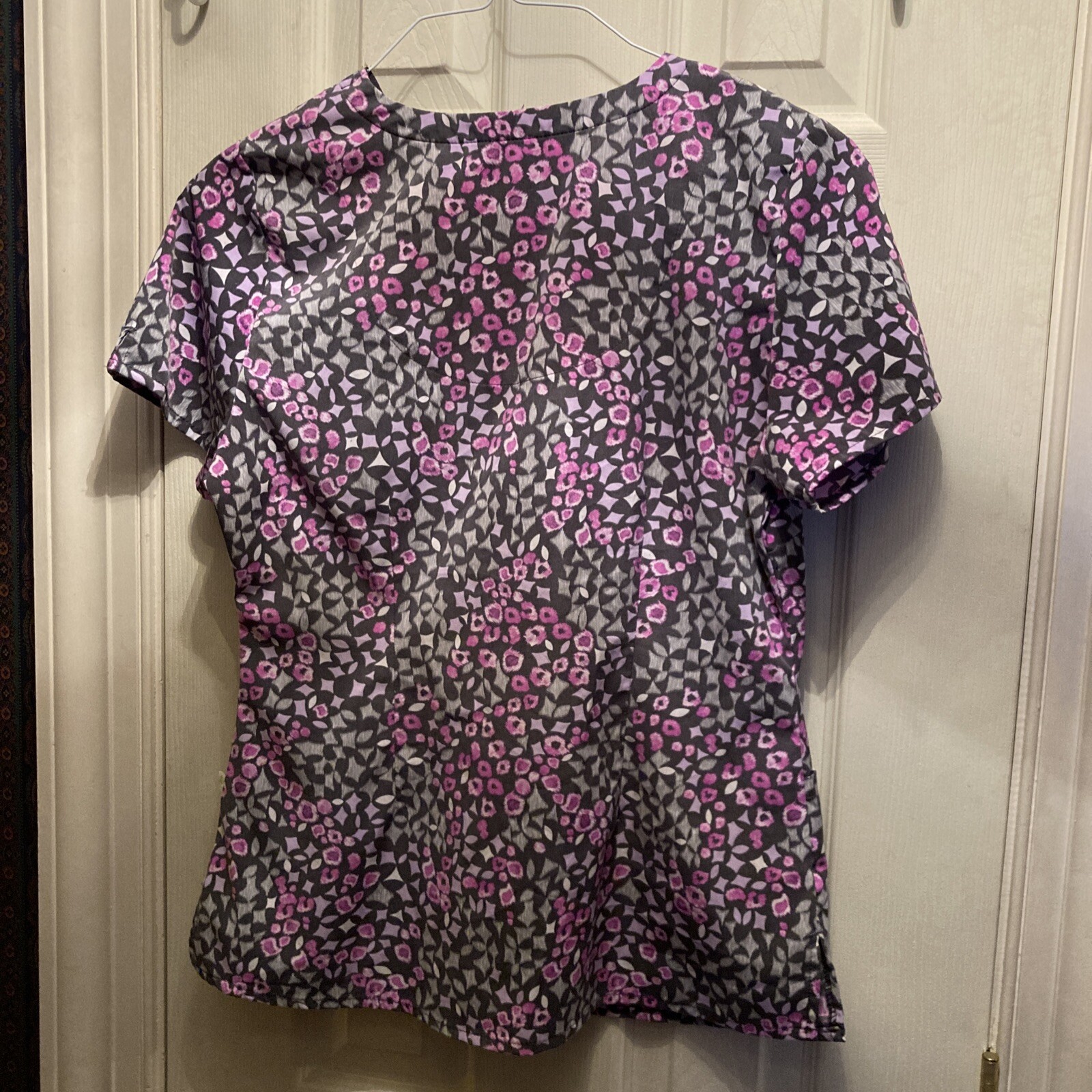 как выглядит HEALING HANDS PREMIERE 2266 WOMENS GRAY PINK PATTERNED SCRUBS TOP SZ MEDIUM фото