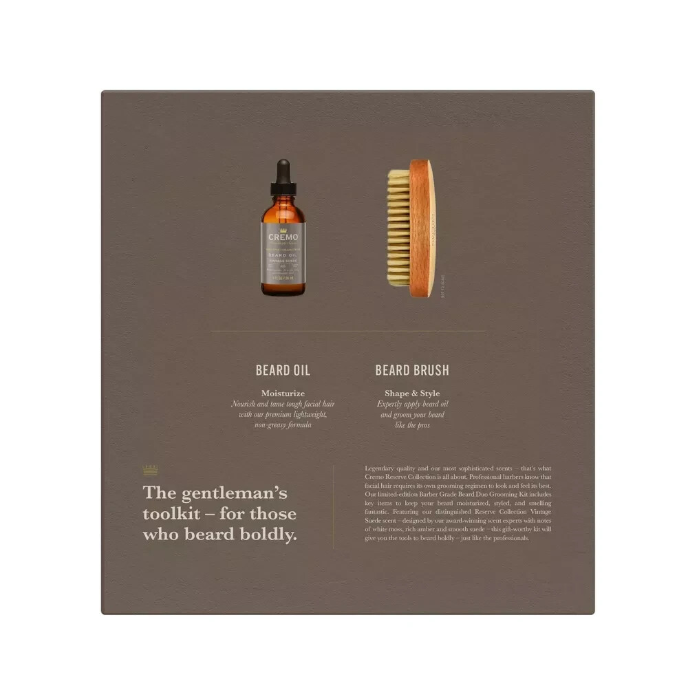 Cremo Beard Oil Reserve Collection VINTAGE SUEDE Beard Brush, 2 Piece Set