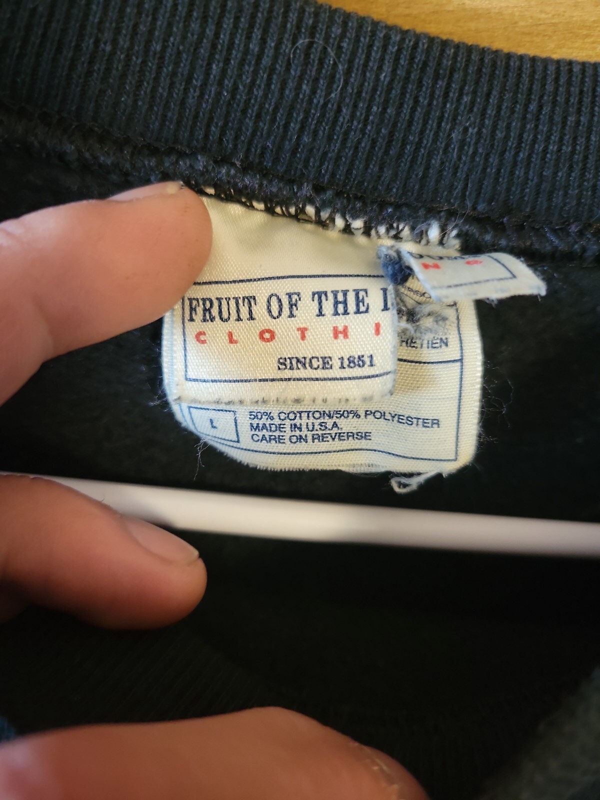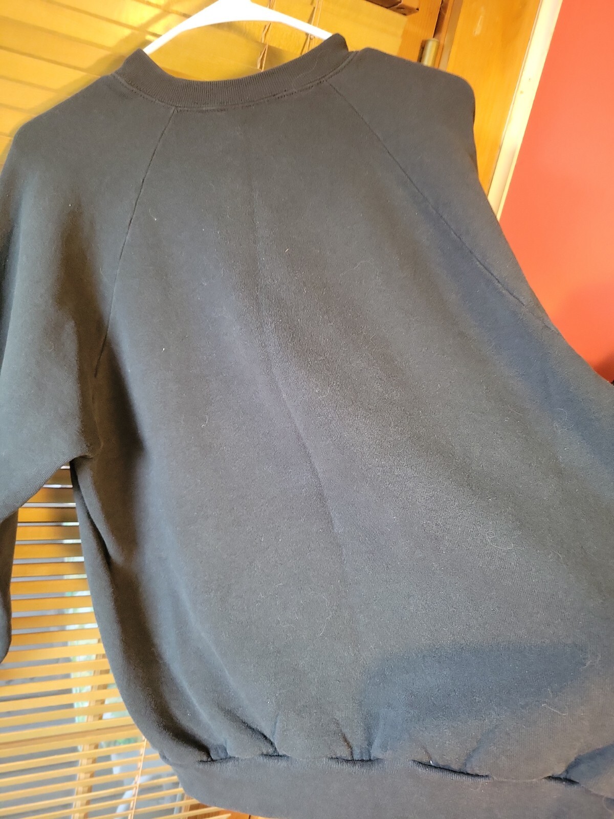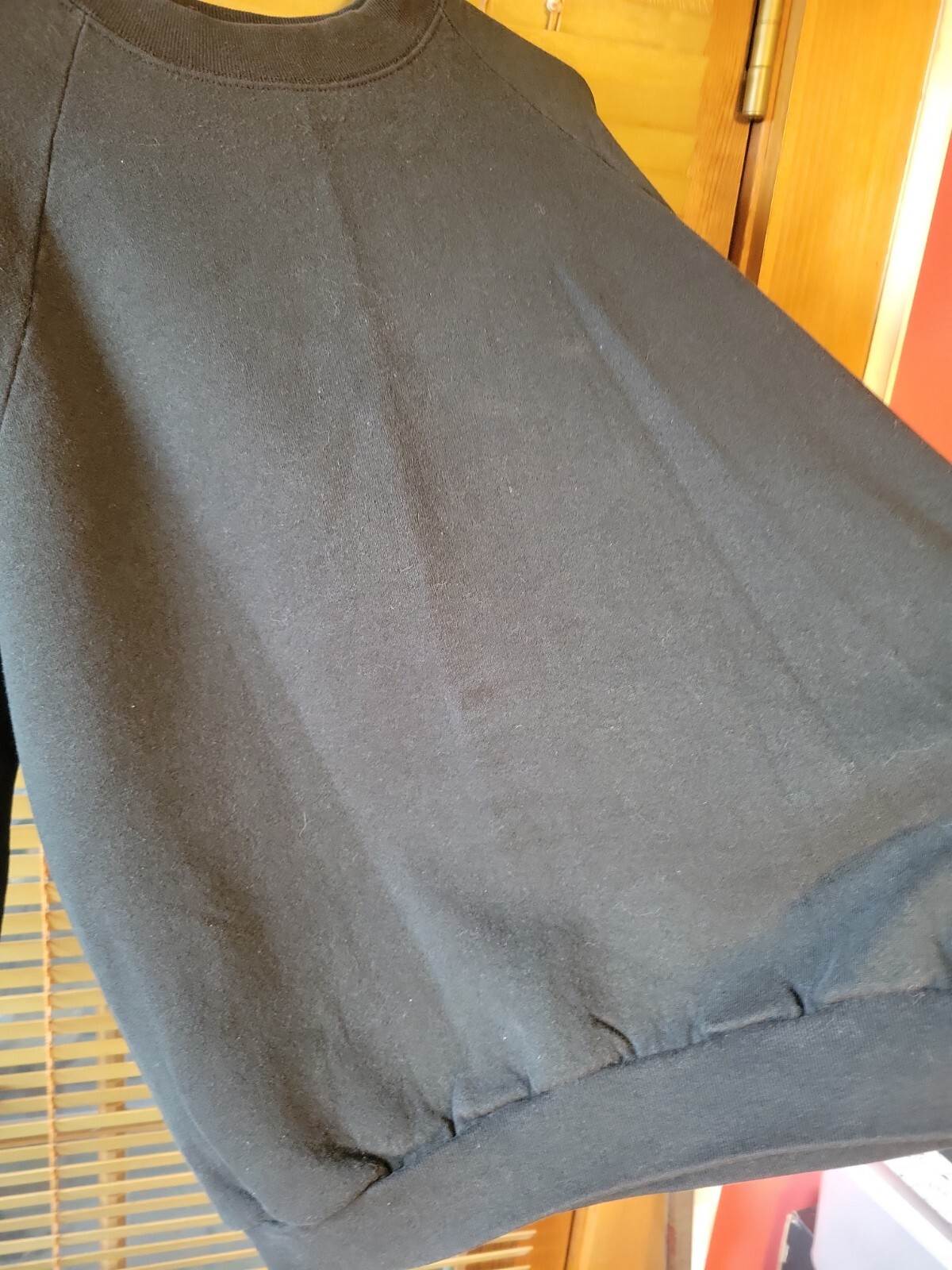как выглядит Vintage Fruit of the Loom Black 90s Blank Raglan Sweatshirt L Made in USA 80s фото