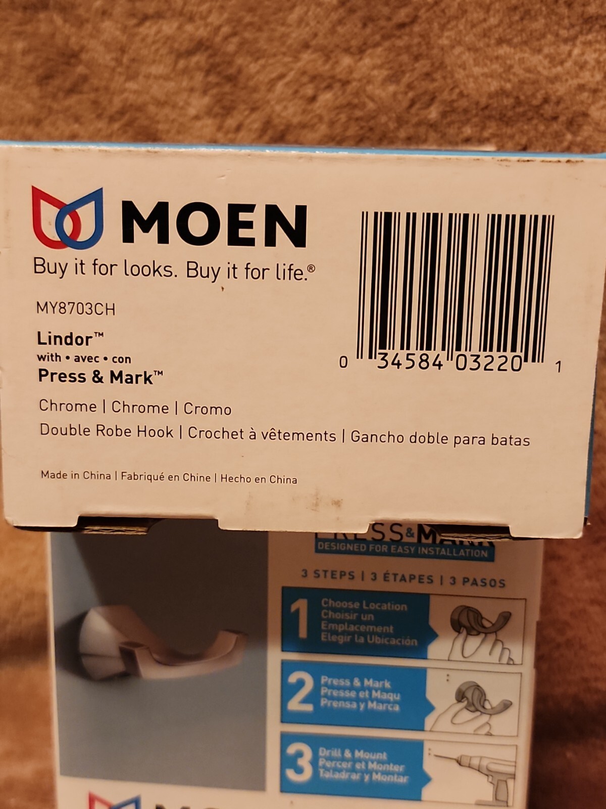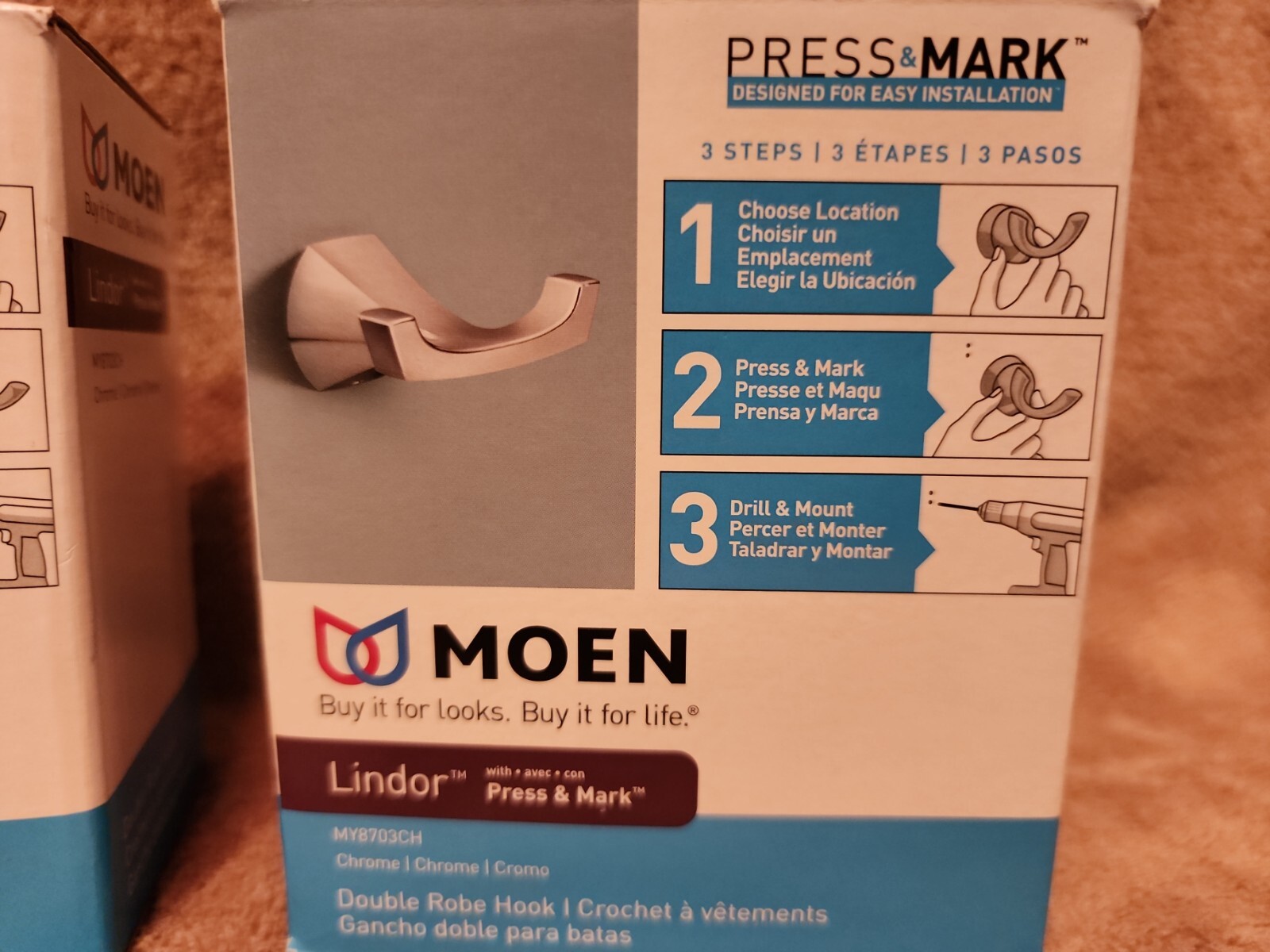 Lot of 2: MOEN Lindor Chrome Double Robe Hook -MY8703CH
