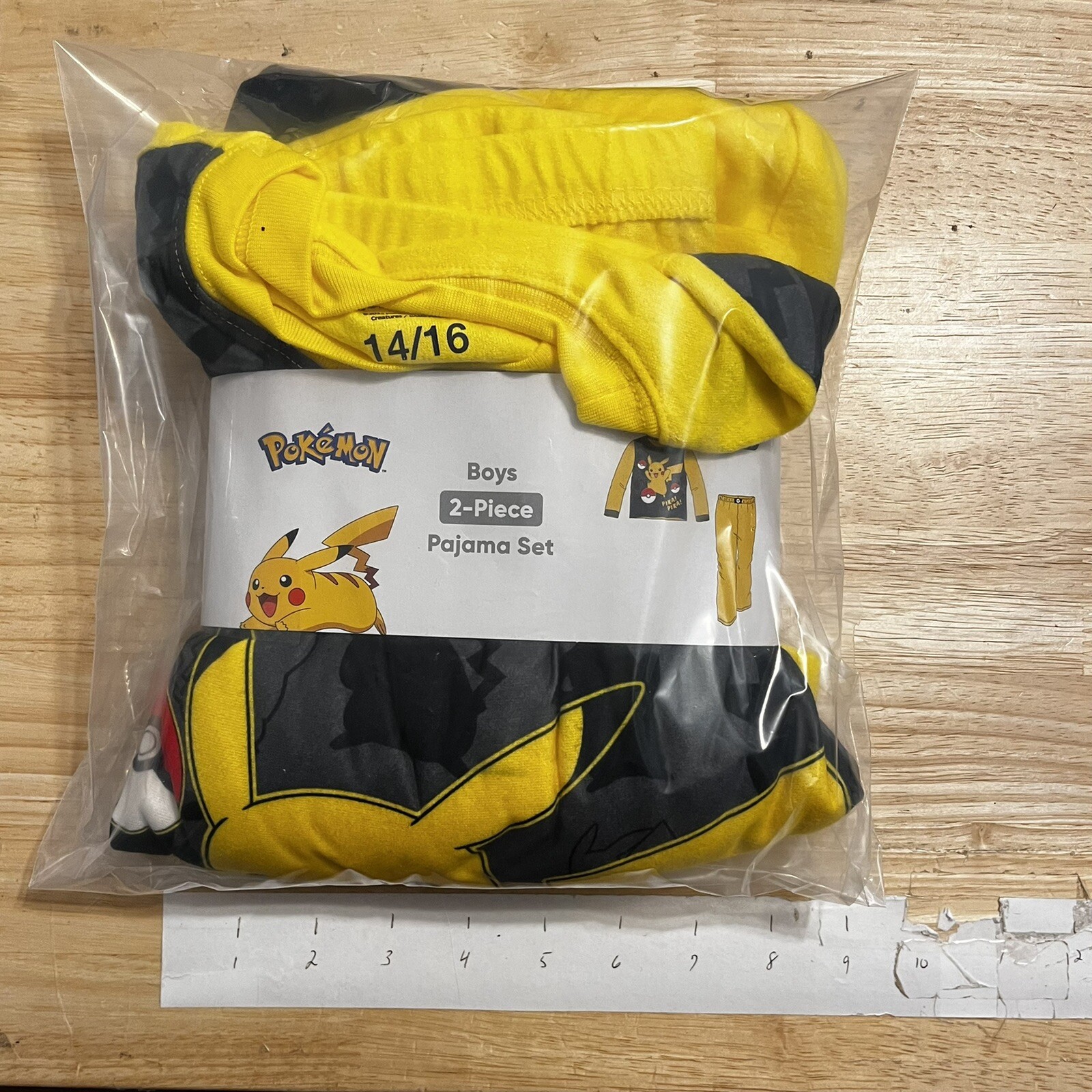 New Boys Pokemon Yellow Pajamas 2 piece Sleep wear Set Size 14/16 XL, dust mark