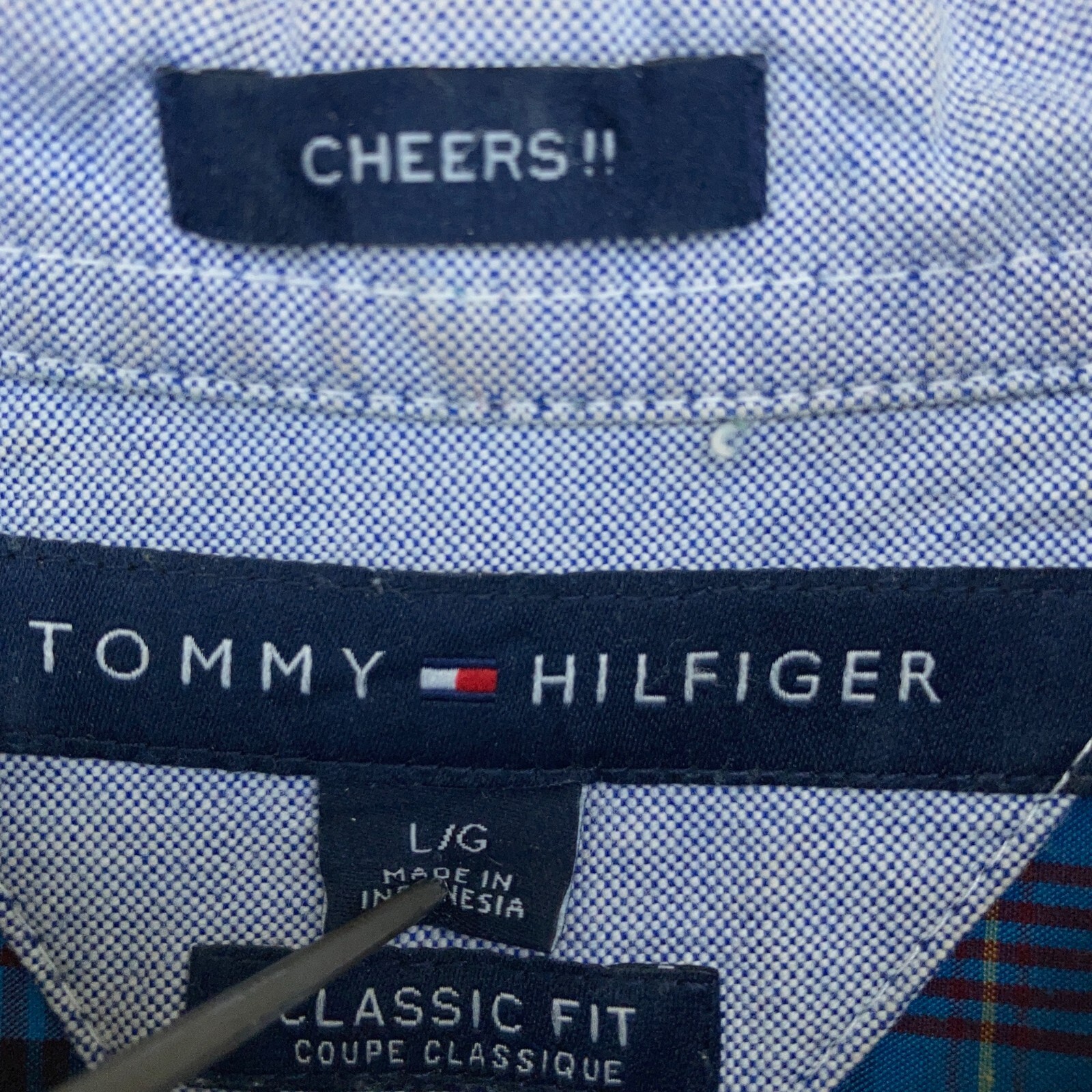 Tommy Hilfiger Button Up Shirt Mens Large Long Sleeve Blue Yellow Check Cotton
