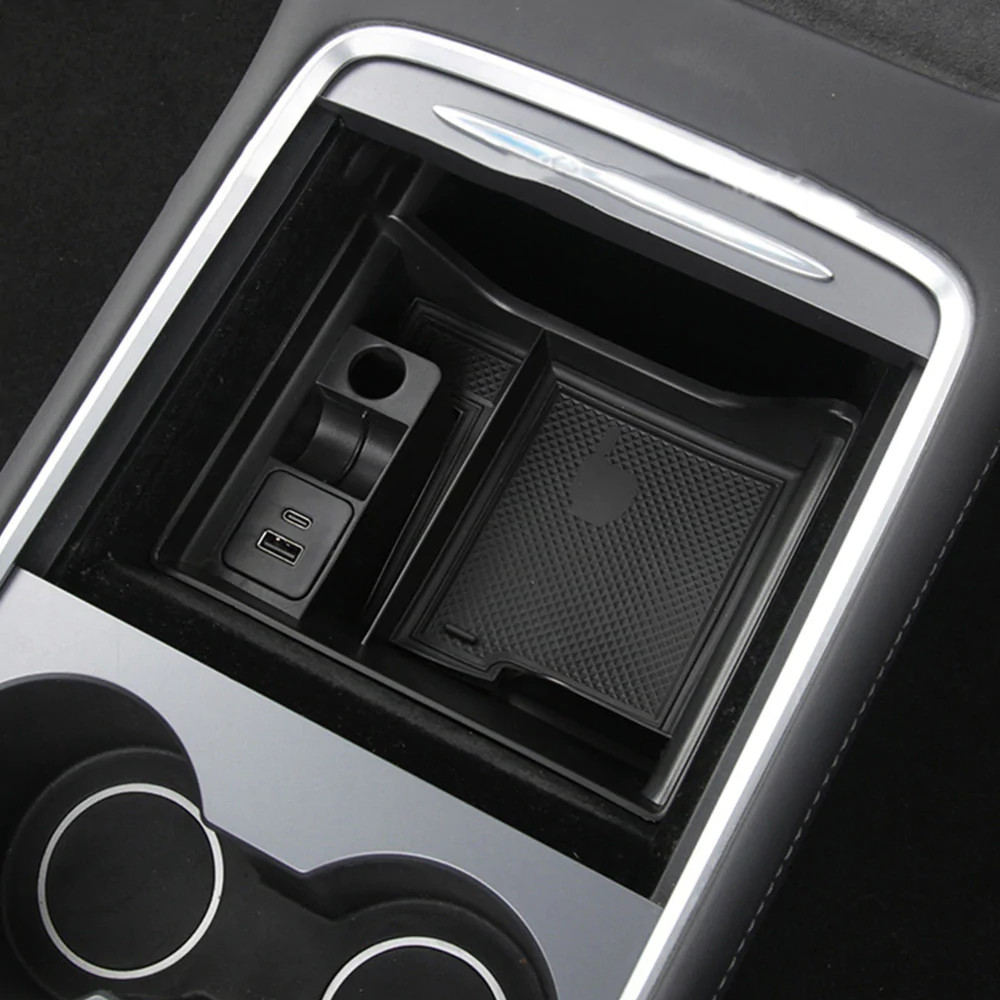 Tesla Model 3, Y Center Console Storage Box with USB Cup Holder