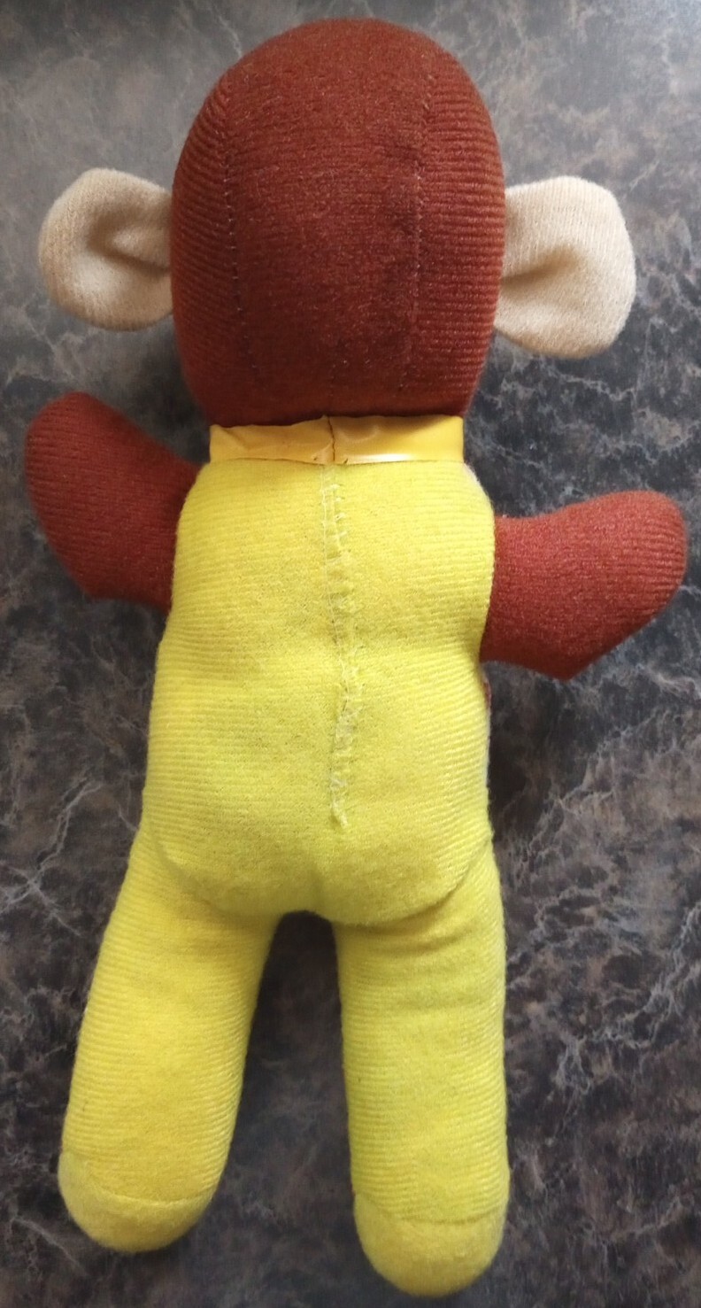 как выглядит Vintage Curious George Stuffed Animal Monkey 10 inch Yellow Striped Shirt-Rare фото
