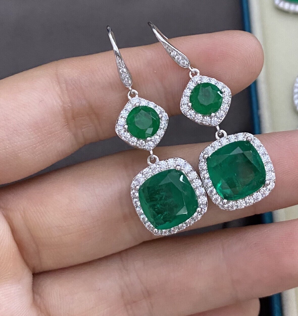 как выглядит Emerald Green 925 Sterling Silver Gemstone Earring Dangle Drop фото