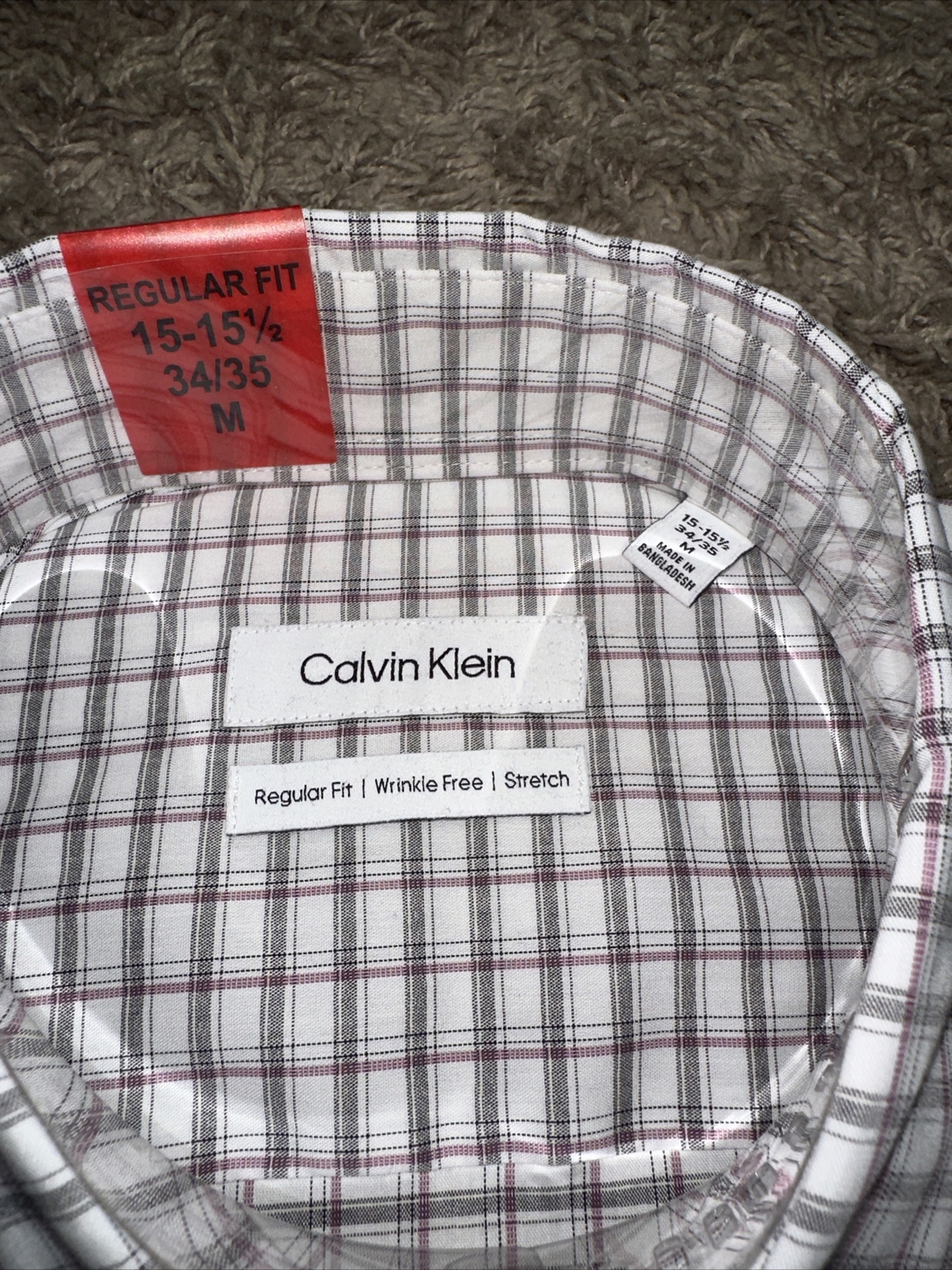как выглядит Mens Calvin Klein Wrinkle Free Dress Shirt White Red Medium 15 - 15 1/2 34 - 35 фото