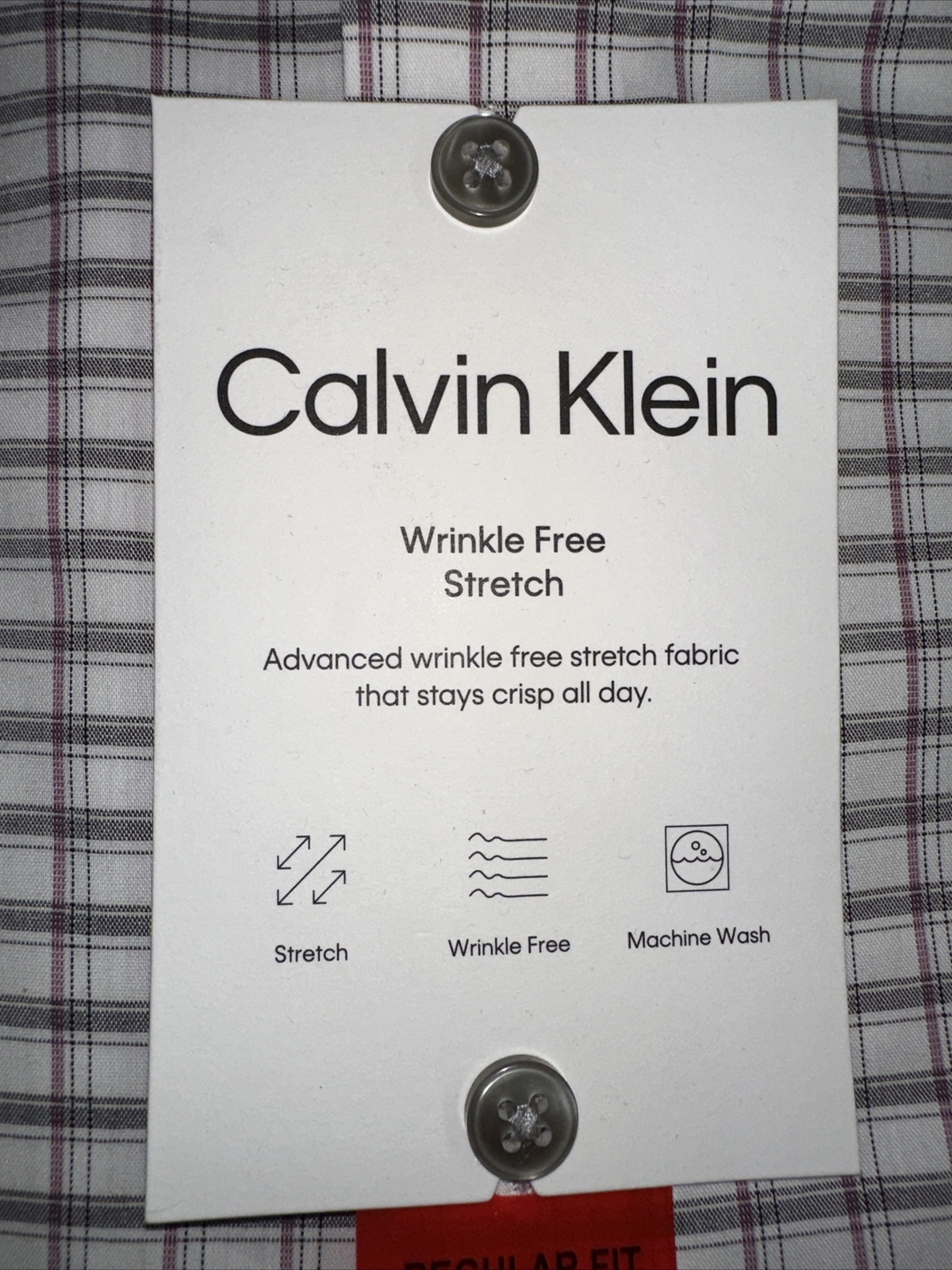Men's Calvin Klein Wrinkle Free Dress Shirt White Red Medium 15 - 15 1/2 34 - 35