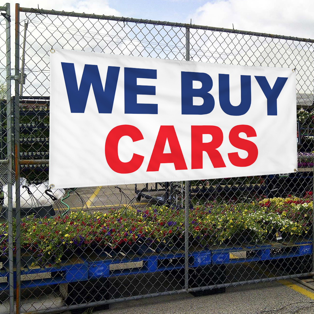Vinyl Banner Multiple Sizes We Buy Cars Blue Red A Automotive Outdoor