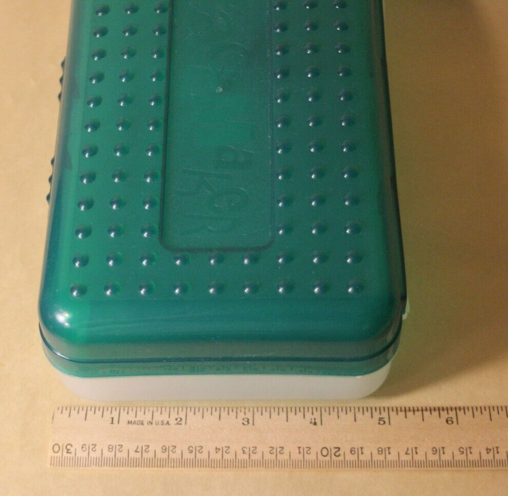 как выглядит Spacemaker Pencil Box Dark Green Frosted Vintage 90s Plastic Storage Case фото