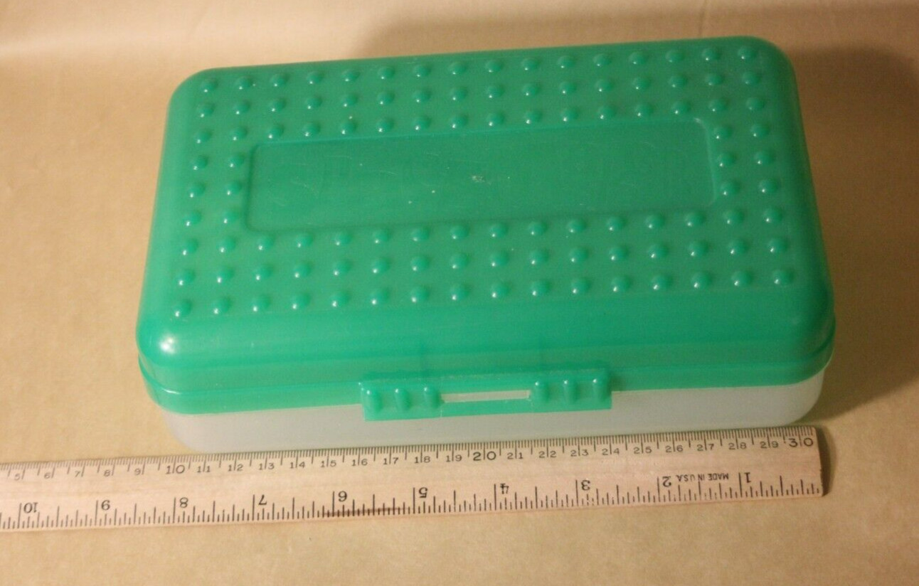 • Spacemaker Pencil Box Bright Green Vintage 90's Plastic Storage Case Chipped