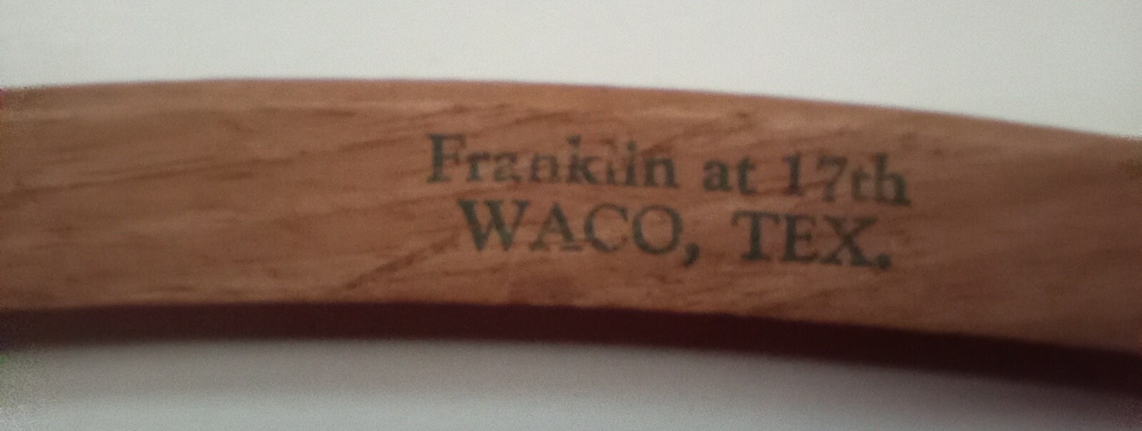 Vtg. Wooden Clothing Clothes Hanger The Progress Waco Texas Advertising Rare