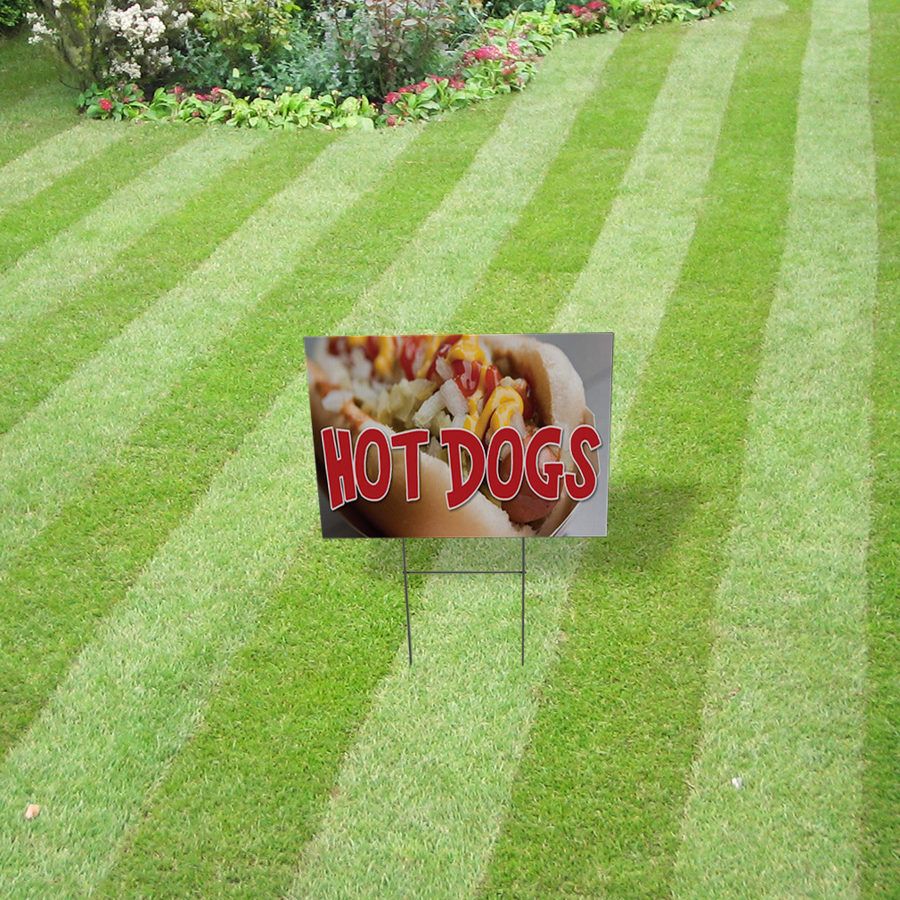 как выглядит Weatherproof Yard Sign Hot Dogs Outdoor Advertising Printing R Brown Lawn Garden фото